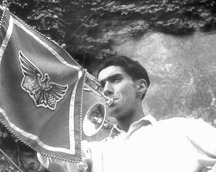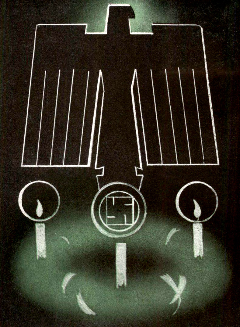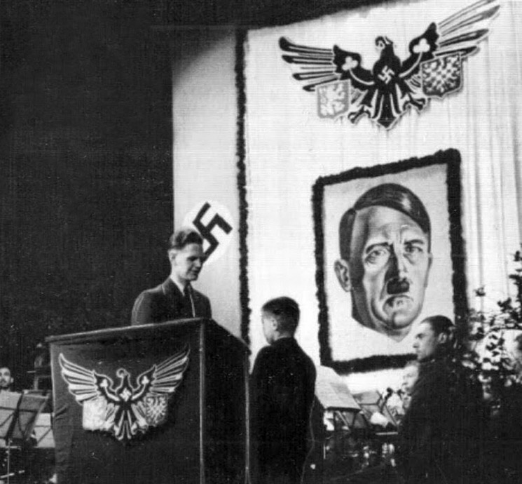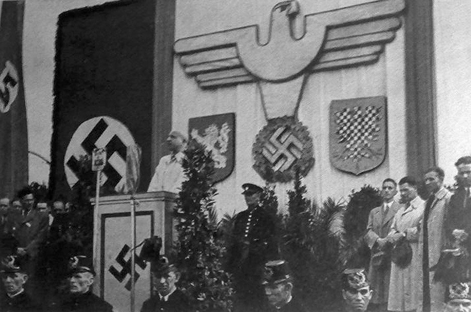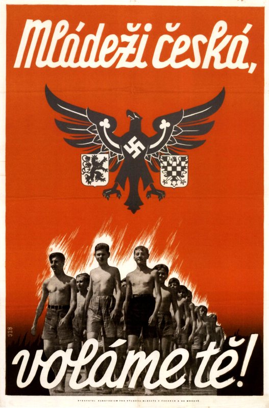 [Below: Believe it or not, there were National Socialist parties in Czechoslovakia (Bohemia and Moravia) during WWII. Massive ones. There is video footage of Czech rallies that are massive. They used a variety of symbols, this eagle is one of them. This says 'Mladeži ceška volame te' (Czech Youths Love You).]