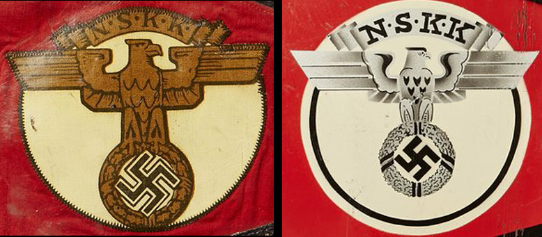 [Below: NSKK eagles from metal fender pennants on vehicles.]