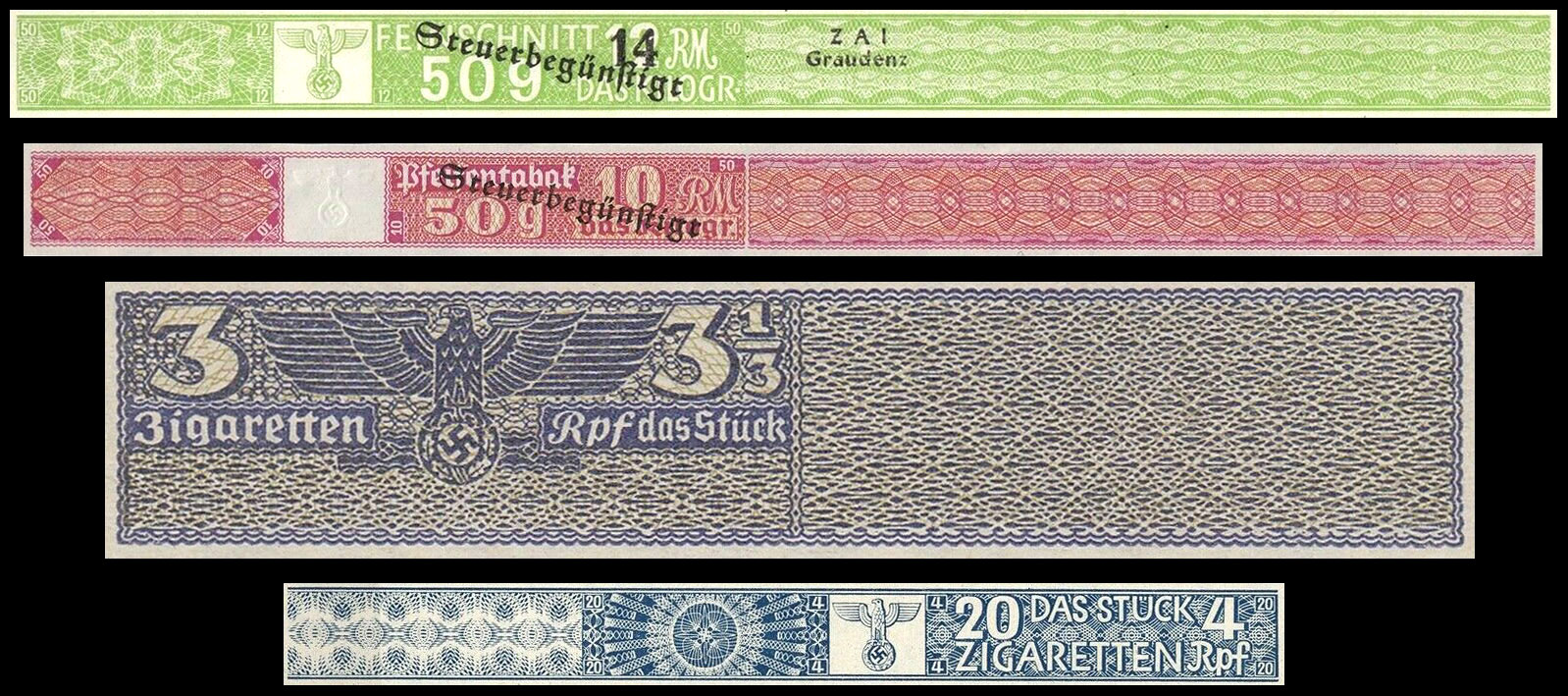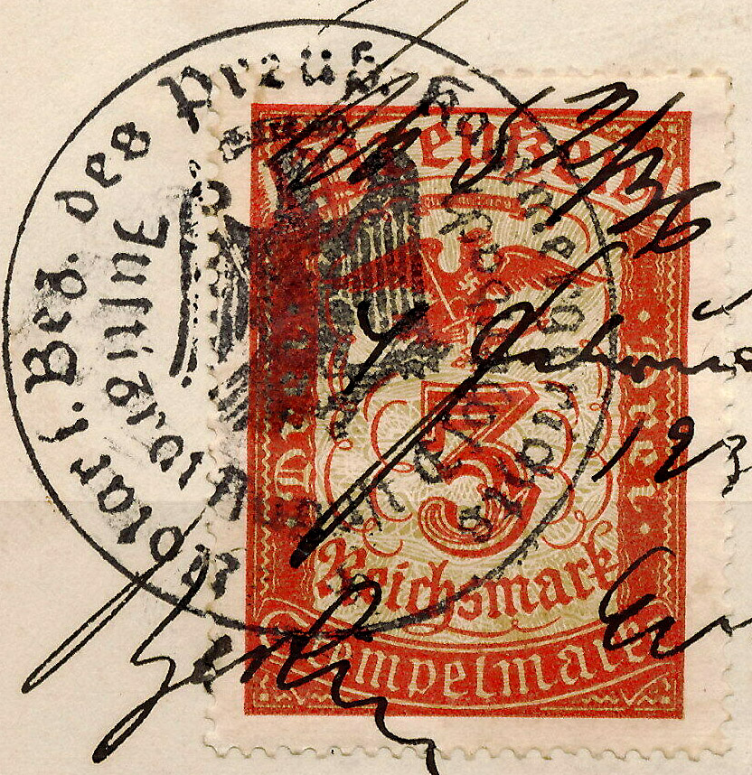 [Below: Here is a selection of rather rare revenue stamps. This particular one is from 1936 and I'm unsure what it was used for. It says 'Prussian Stamp Mark' on it...]
