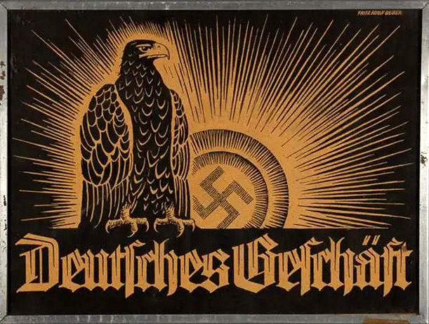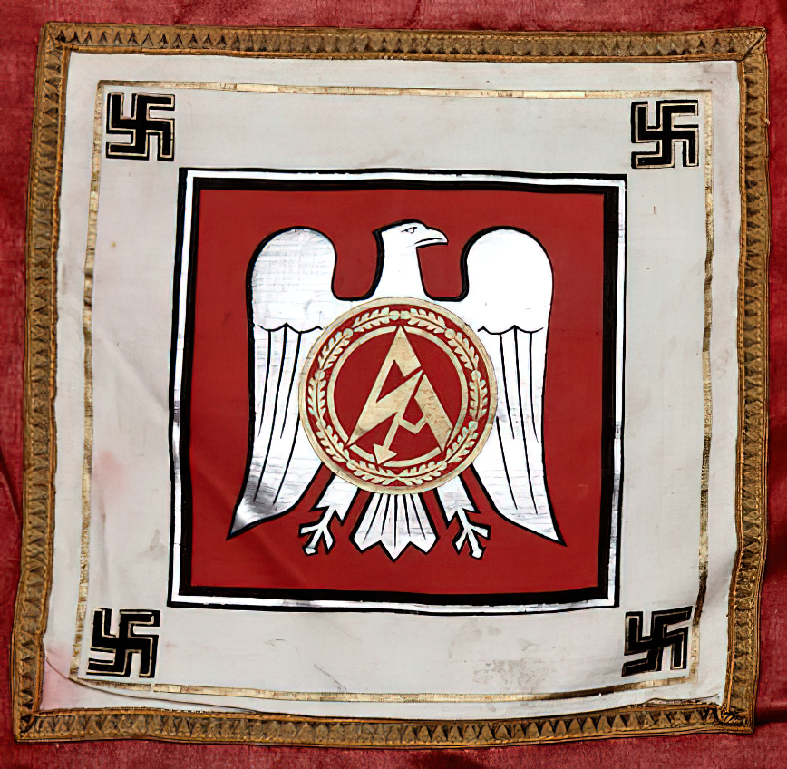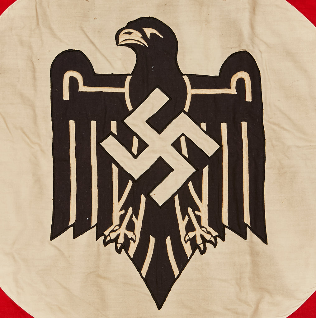 [Below: This eagle is from the center of a flag for the National Socialist League of the Reich for Physical Exercise (Reichsbund für Leibesübungen, or simply NSRL).]