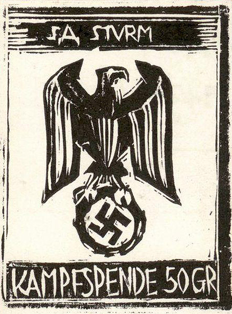 [Below: Donation bookplate-vignette for an SA Unit in Austria, 1935.]