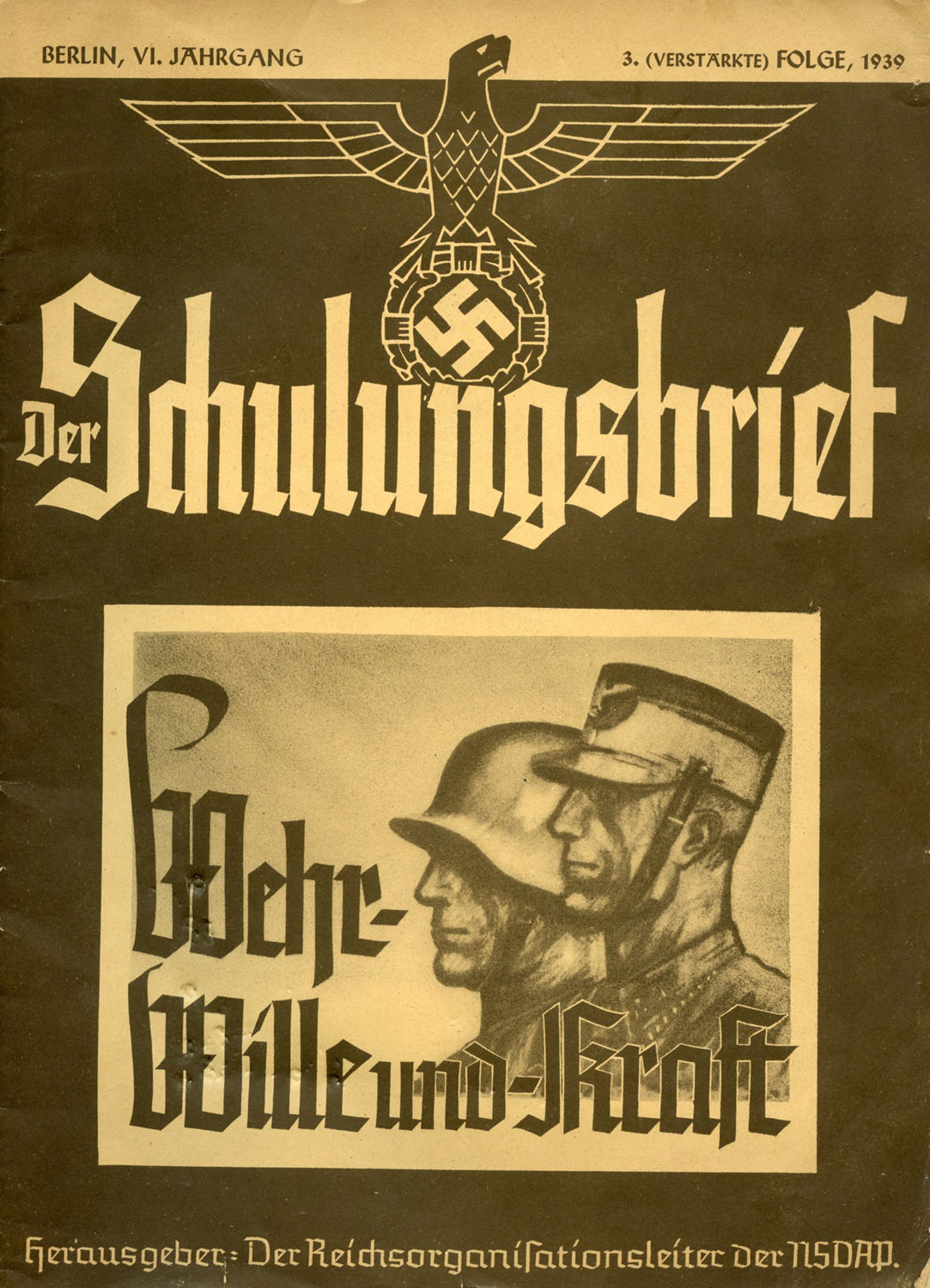 [Below: 'Der Schulungsbrief' (The Training Letter). This is cool looking! It's a cultural magazine about German/European history. The cover says 'Wehr-Wille und Kraft' (Defense, Will and Strength). I have a few of these magazines and have considered scanning them, does anyone want to see them? Email me and I'll try to find the time to scan them.]