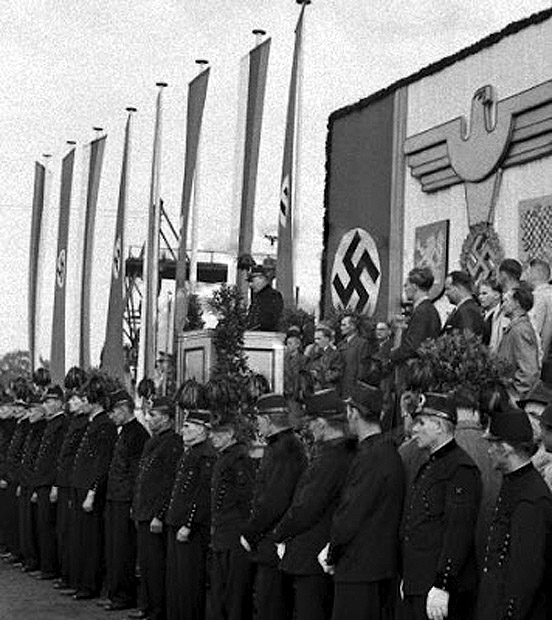 [Below: Here's a shot from the film premier of Triumph of the Will.]