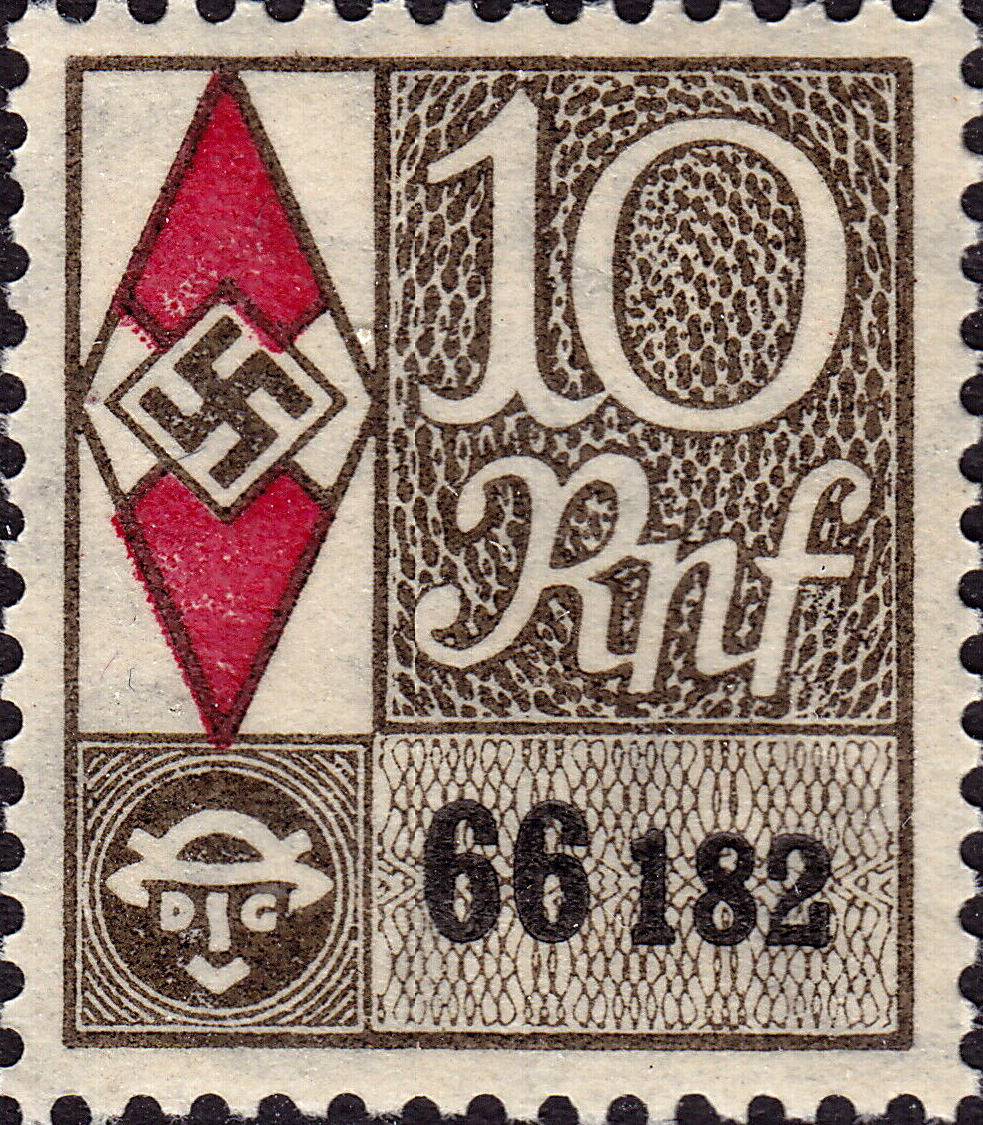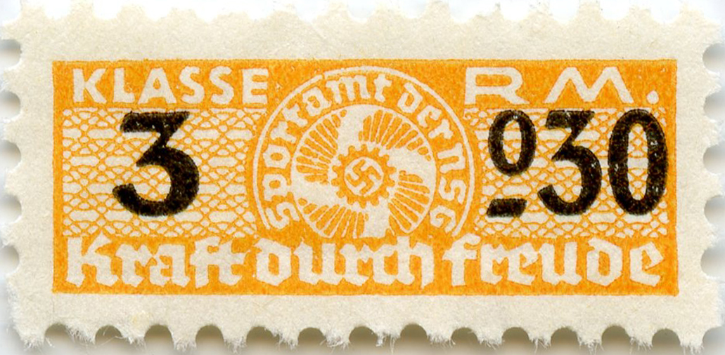 [Below: This is a 'Kraft durch Freude' (Strength through Joy) Hitler Youth savings stamp.]