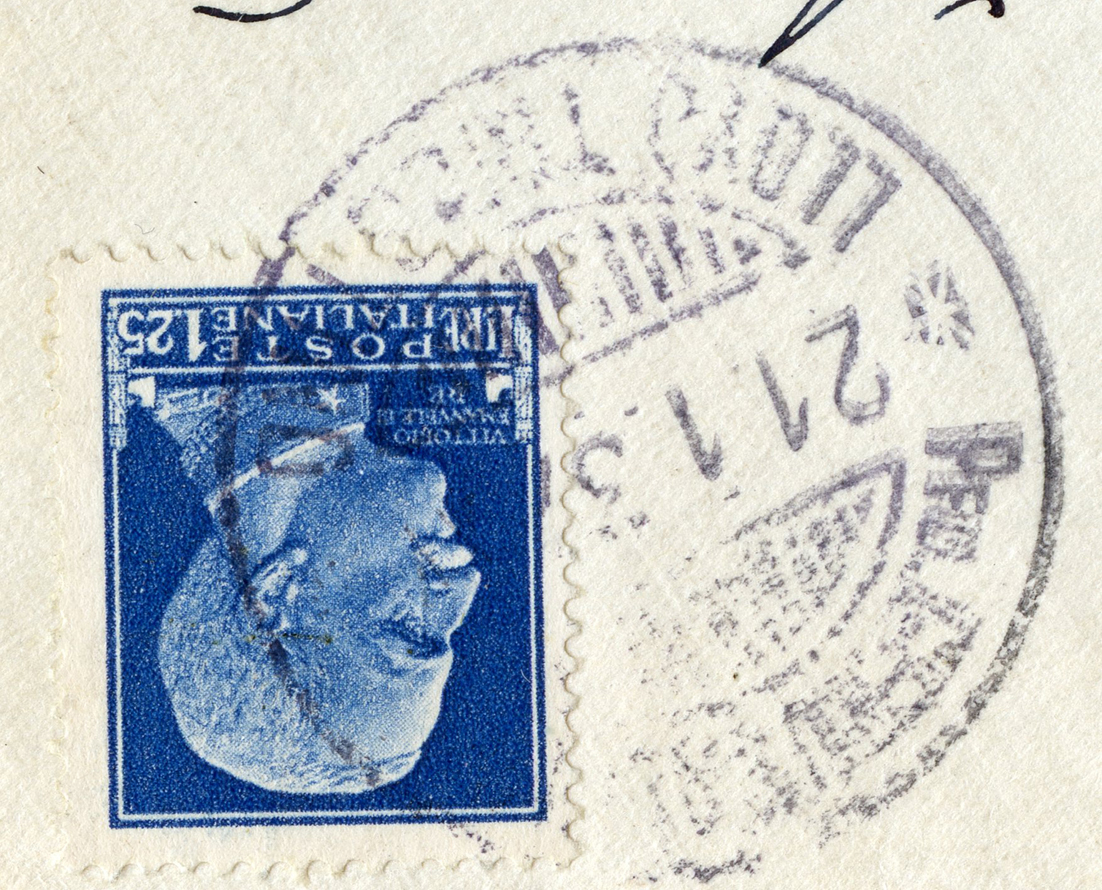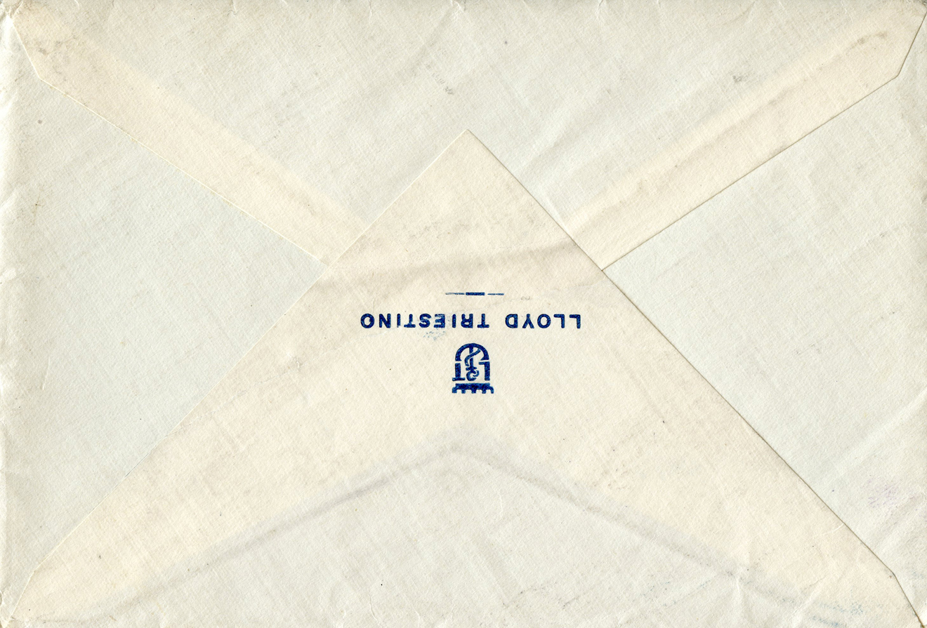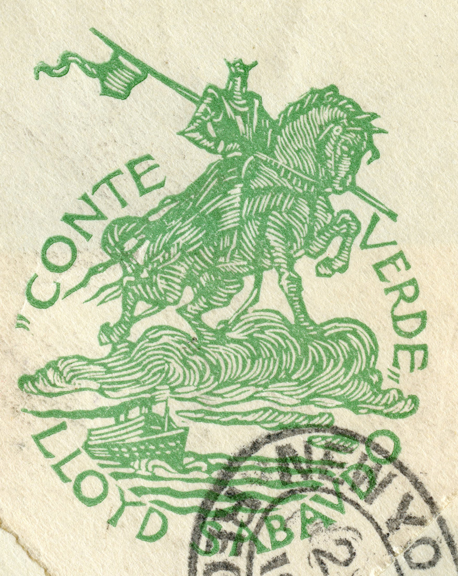 [Below: Close-up. Postmarked on board the S.S. Lloyd Triestino. Click to enlarge.]