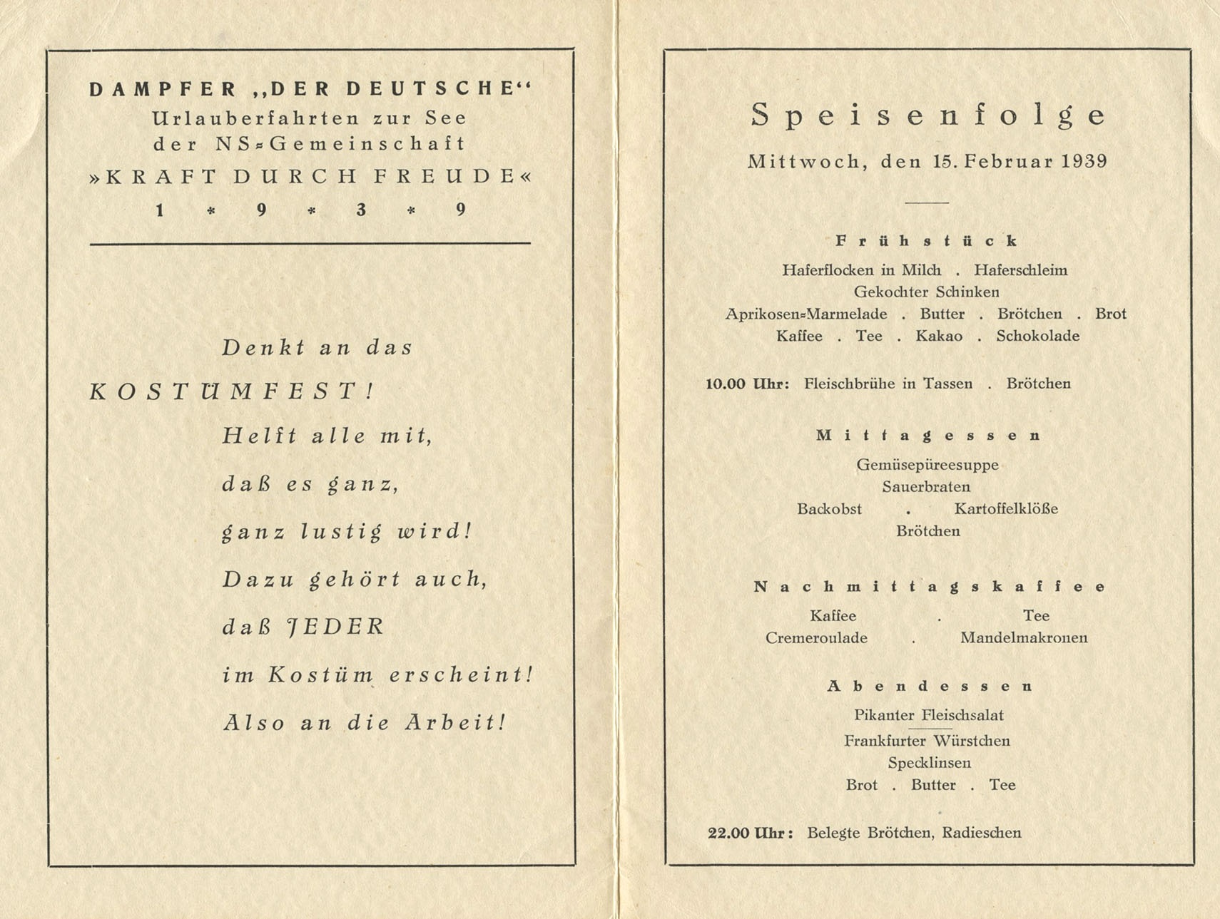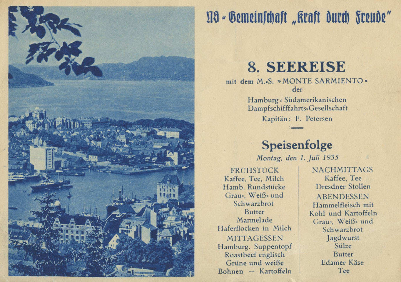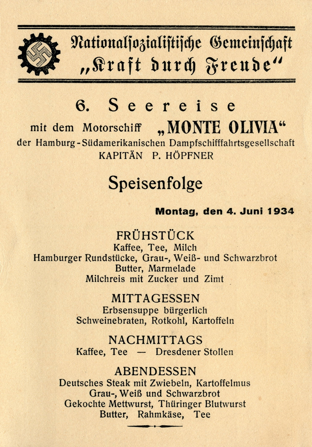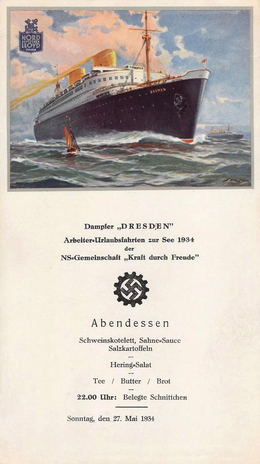 [Below: A menu from a 1934 'Dresden' KdF cruise.]
