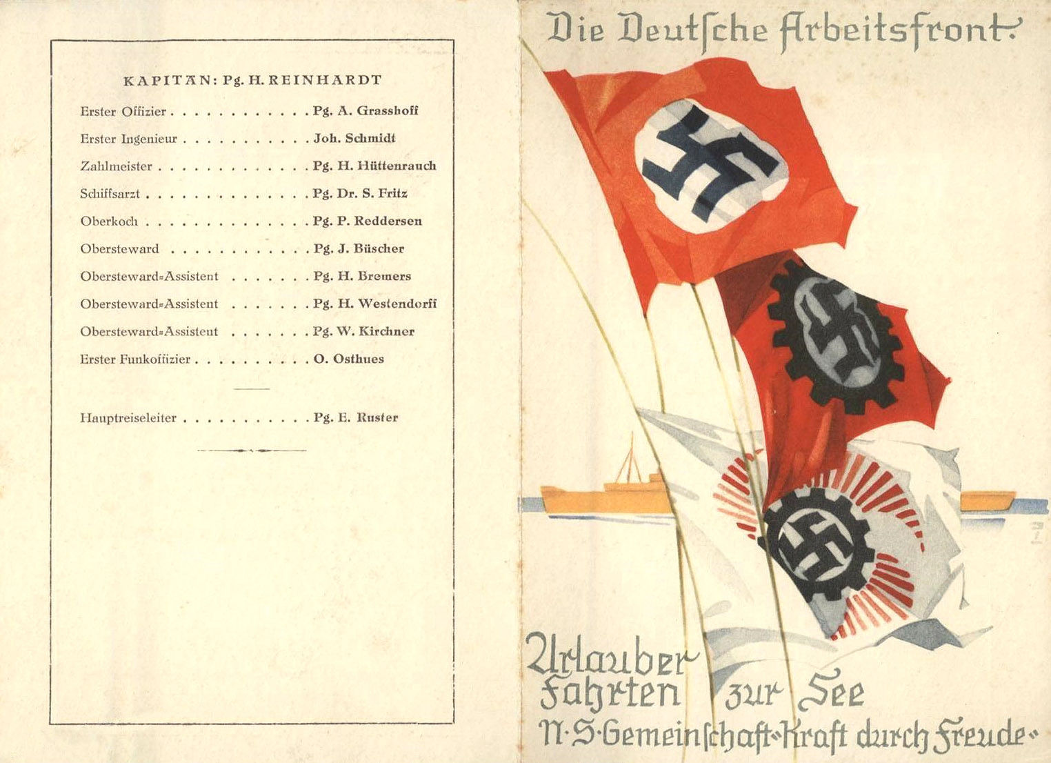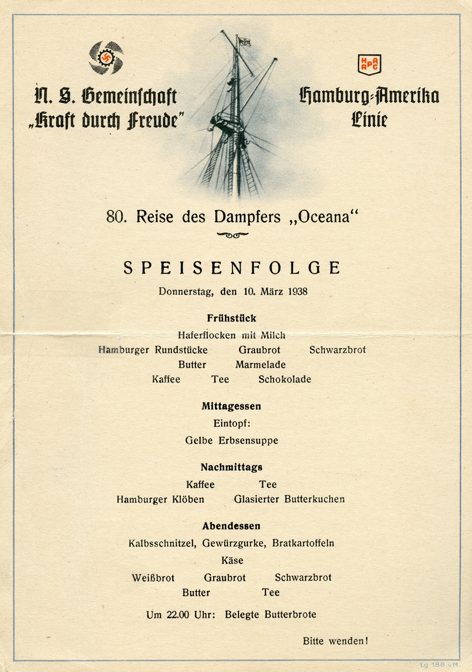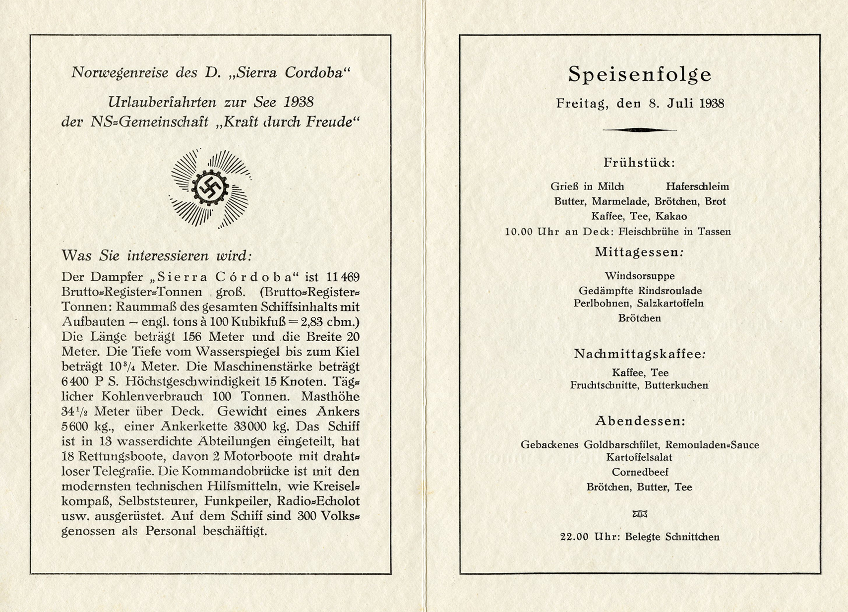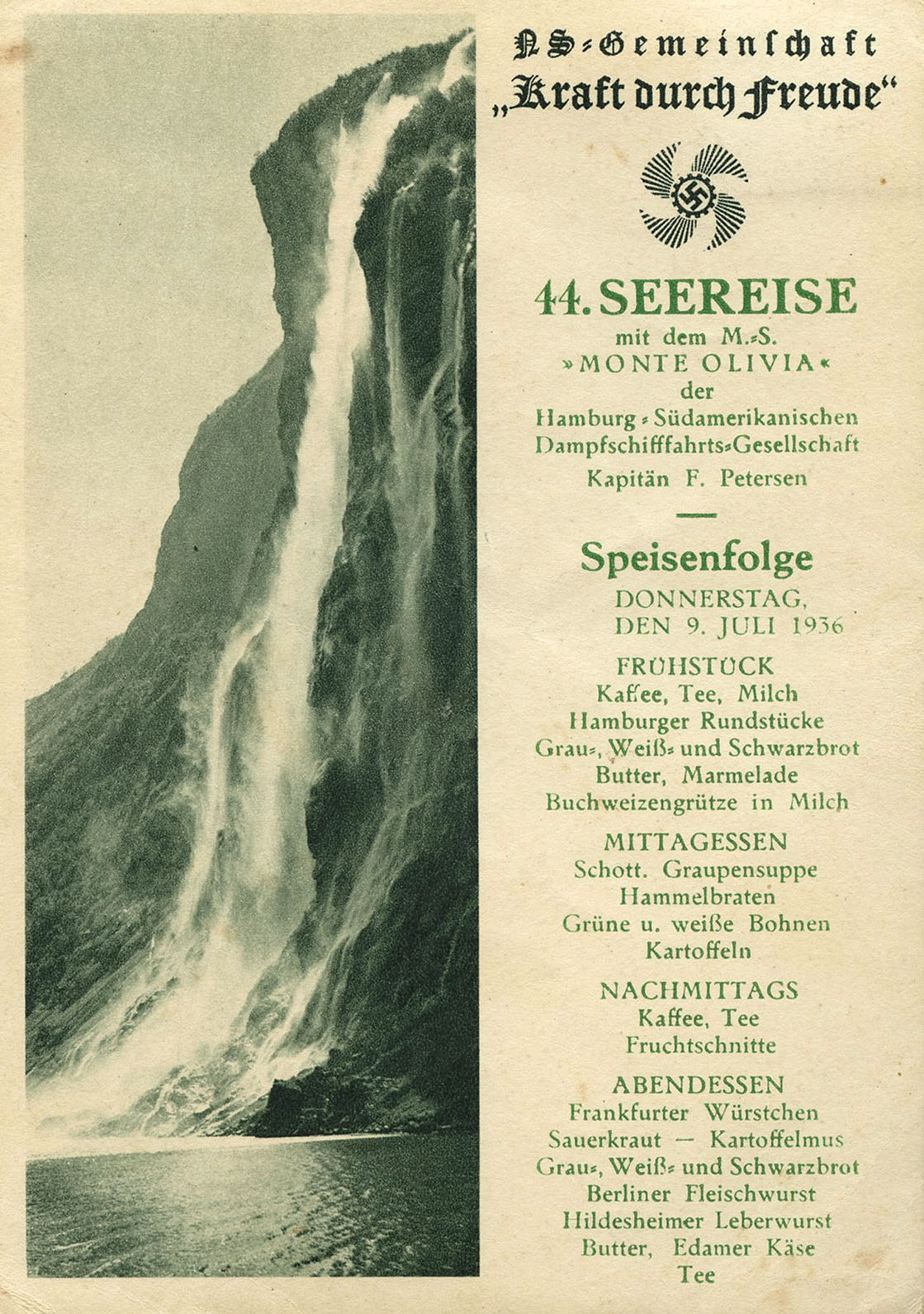 [Below: A menu from a 1934 'Dresden' KdF cruise.]