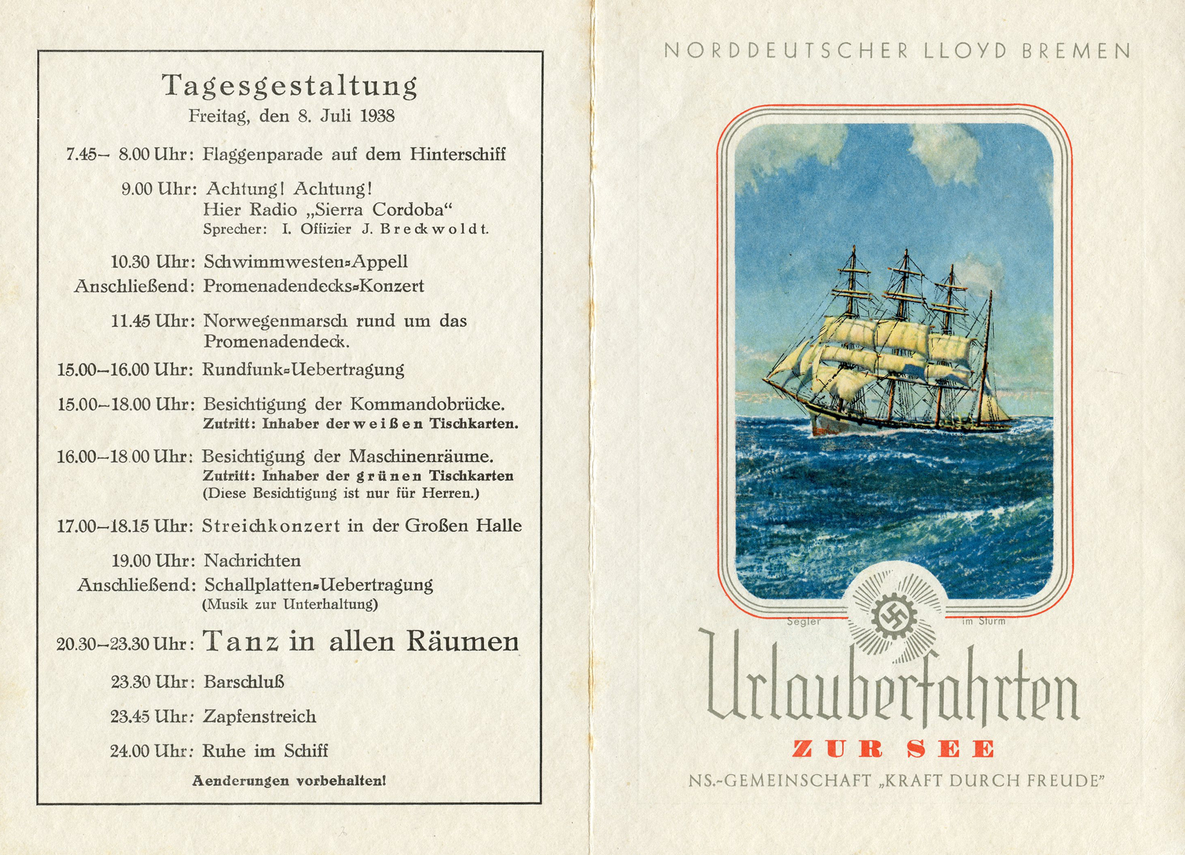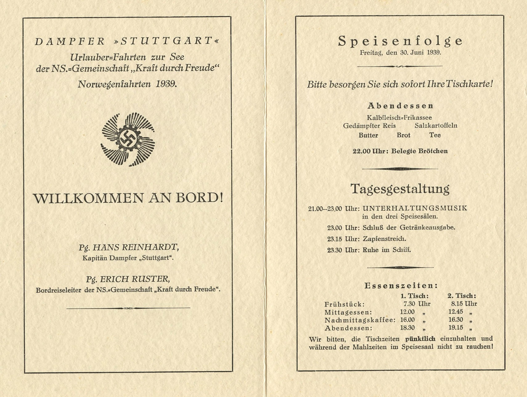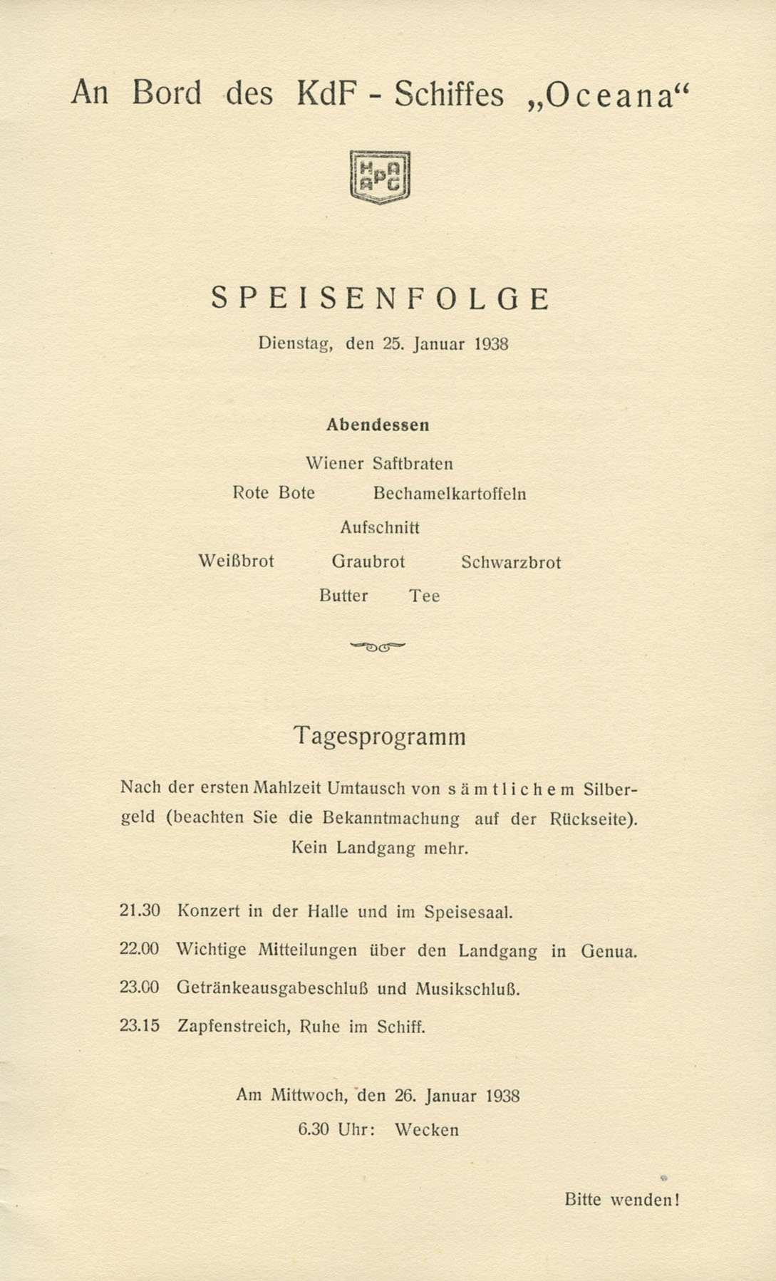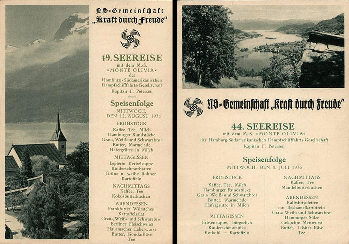 [Below: A menu from a 1934 'Dresden' KdF cruise.]