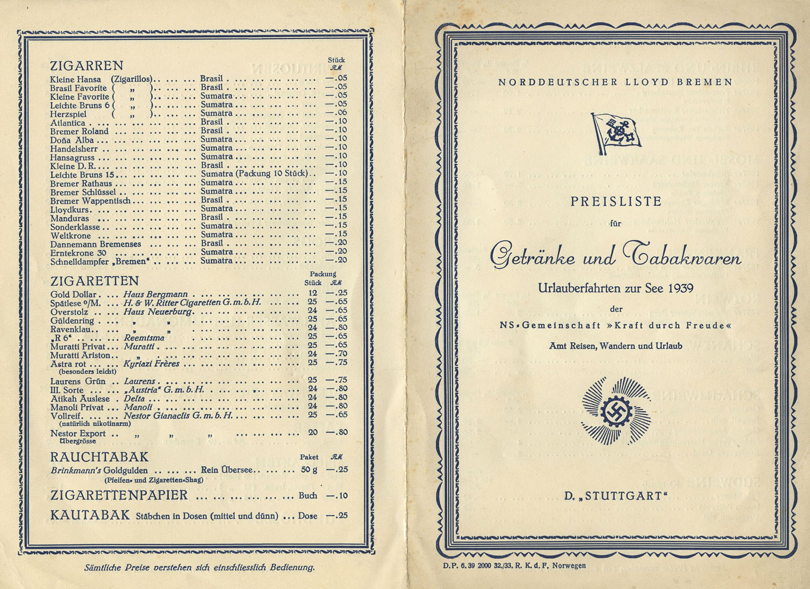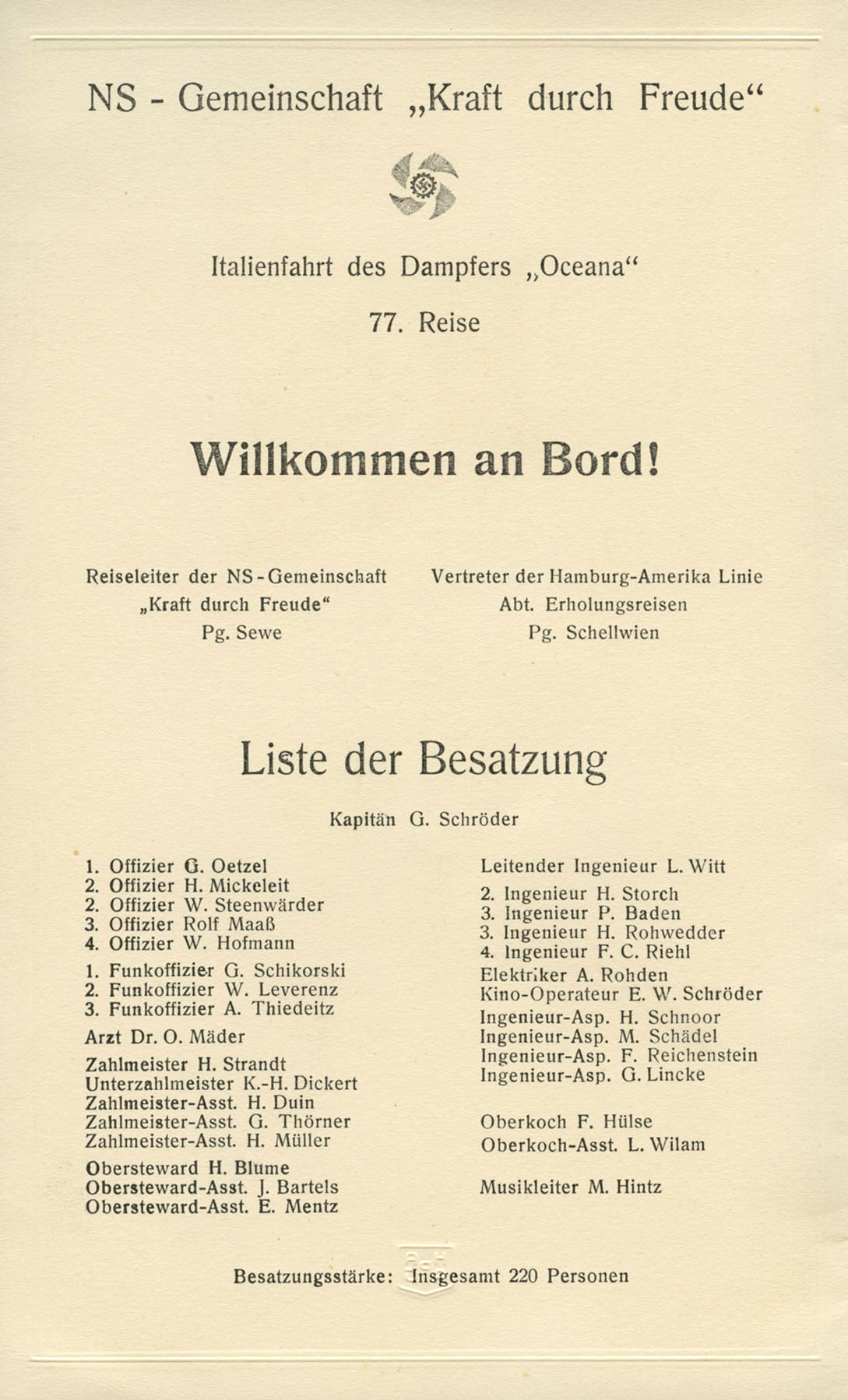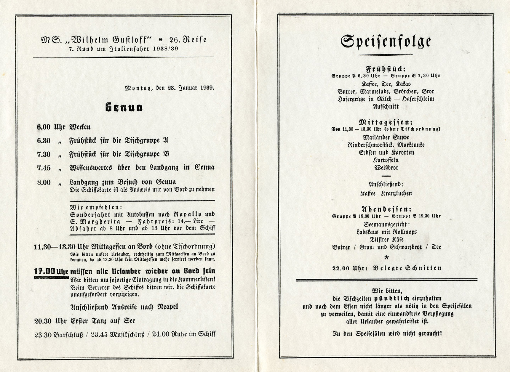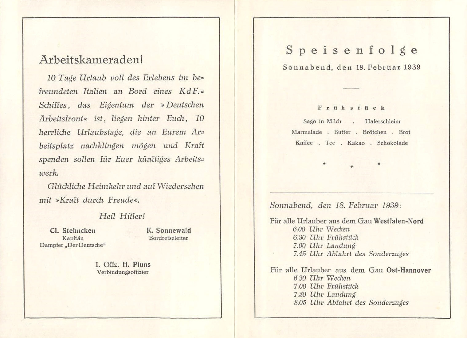 [Below: A menu from a 1934 'Dresden' KdF cruise.]