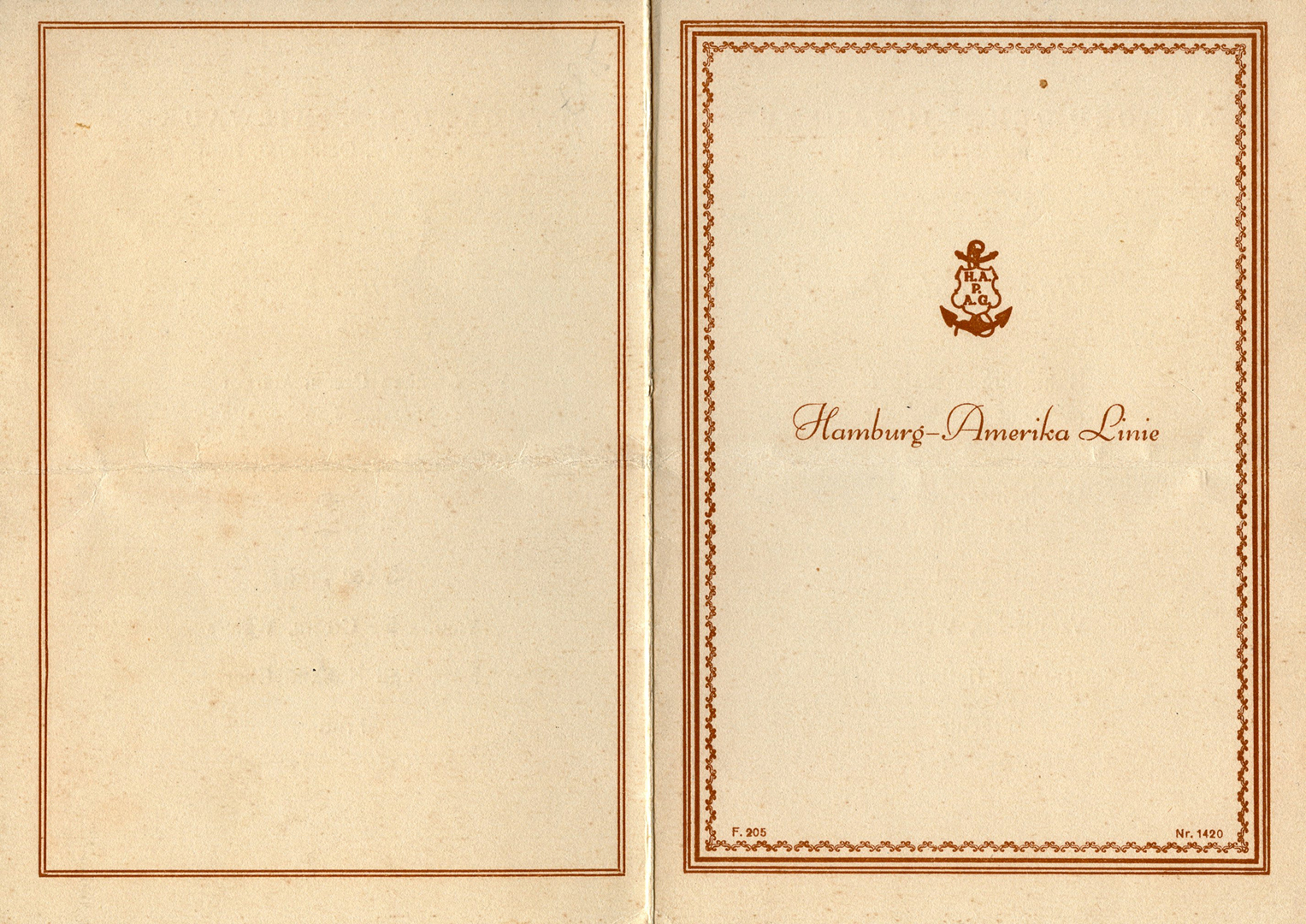 [Below: This is a booklet from from the S.S. Amerika, January 5, 1906. This was part of the Hamburg America Line. Click to see more.]