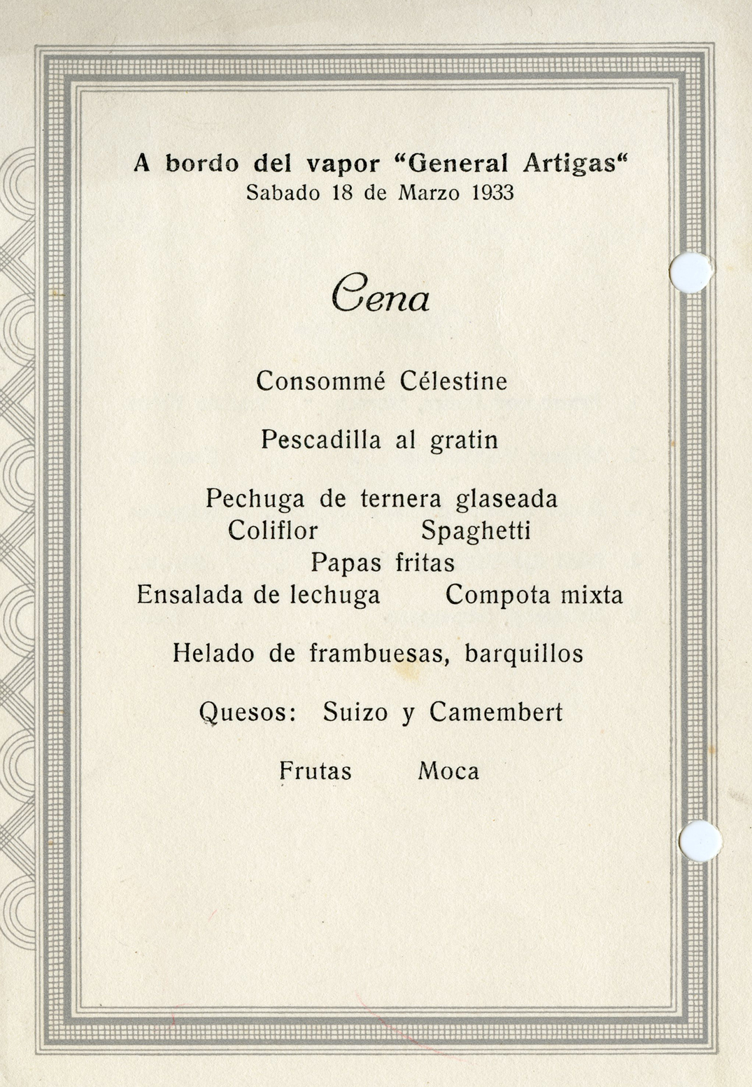 [Below: Menu from a cruise on the 'General Artigas' from March 18, 1933. Click to enlarge and see reverse.]