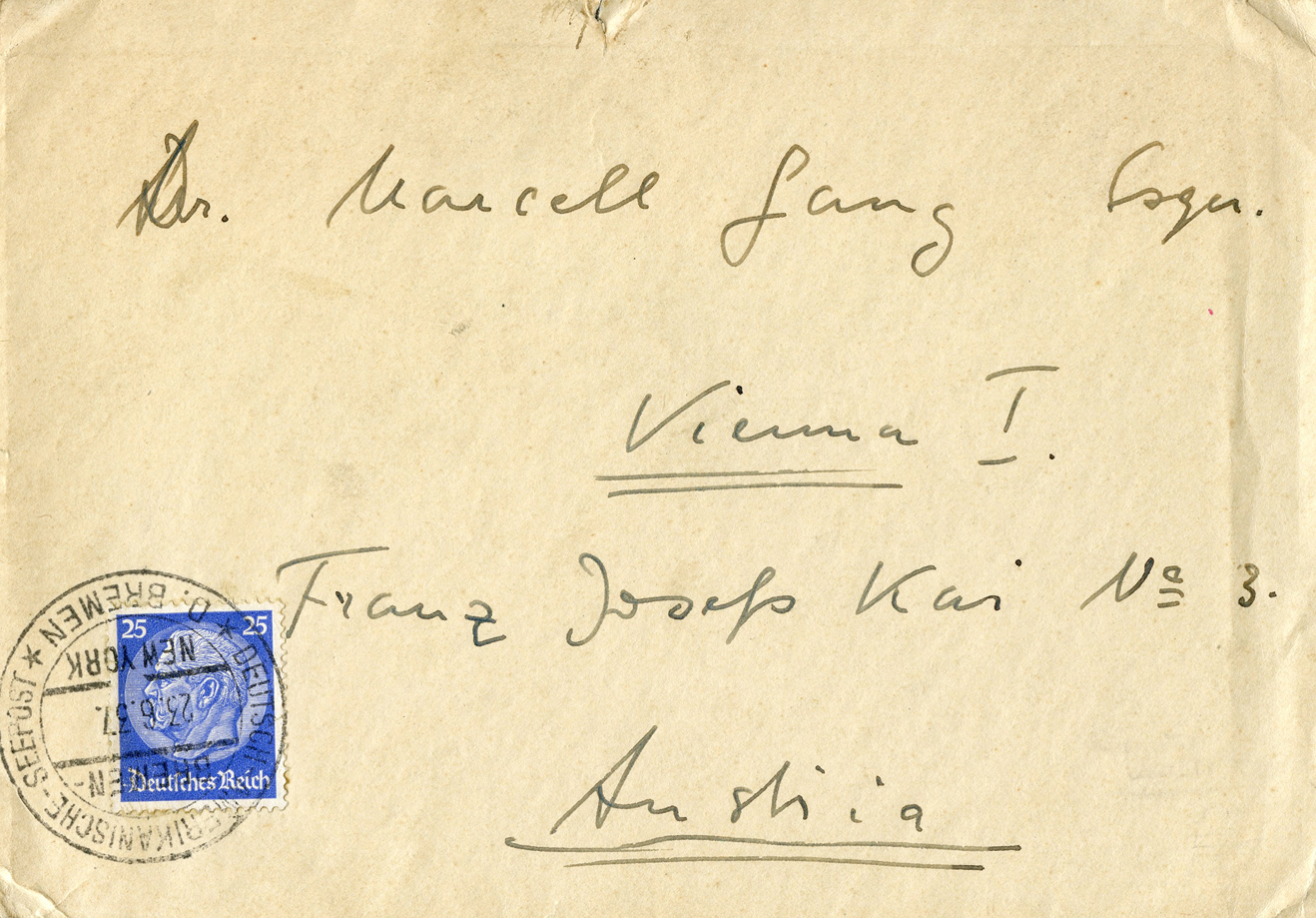 [Below: Postmarked on a sea voyage on the S.S. Bremen from Bremen to New York on June 23, 1937 and sent to Austria. Click to enlarge.]
