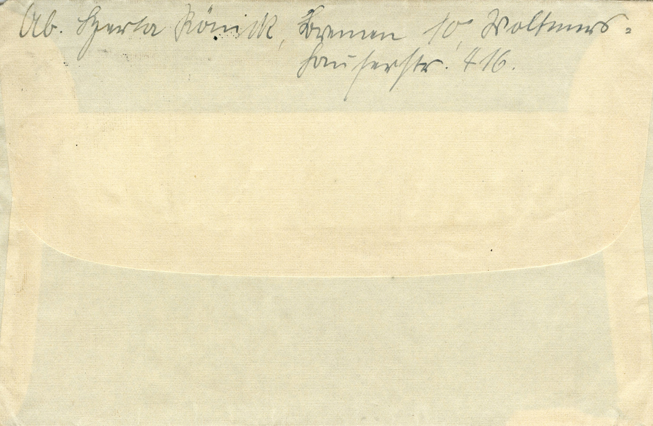 [Below: Envelope reverse, showing a number of receiving stamps.]