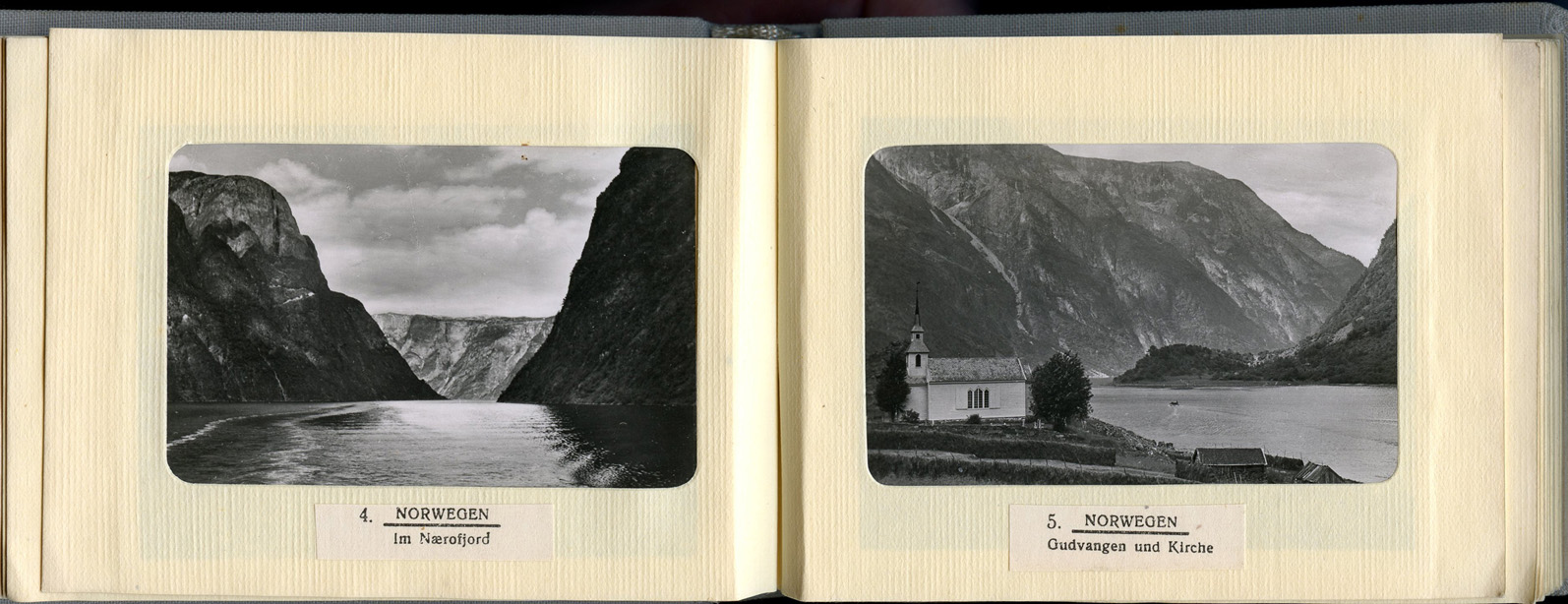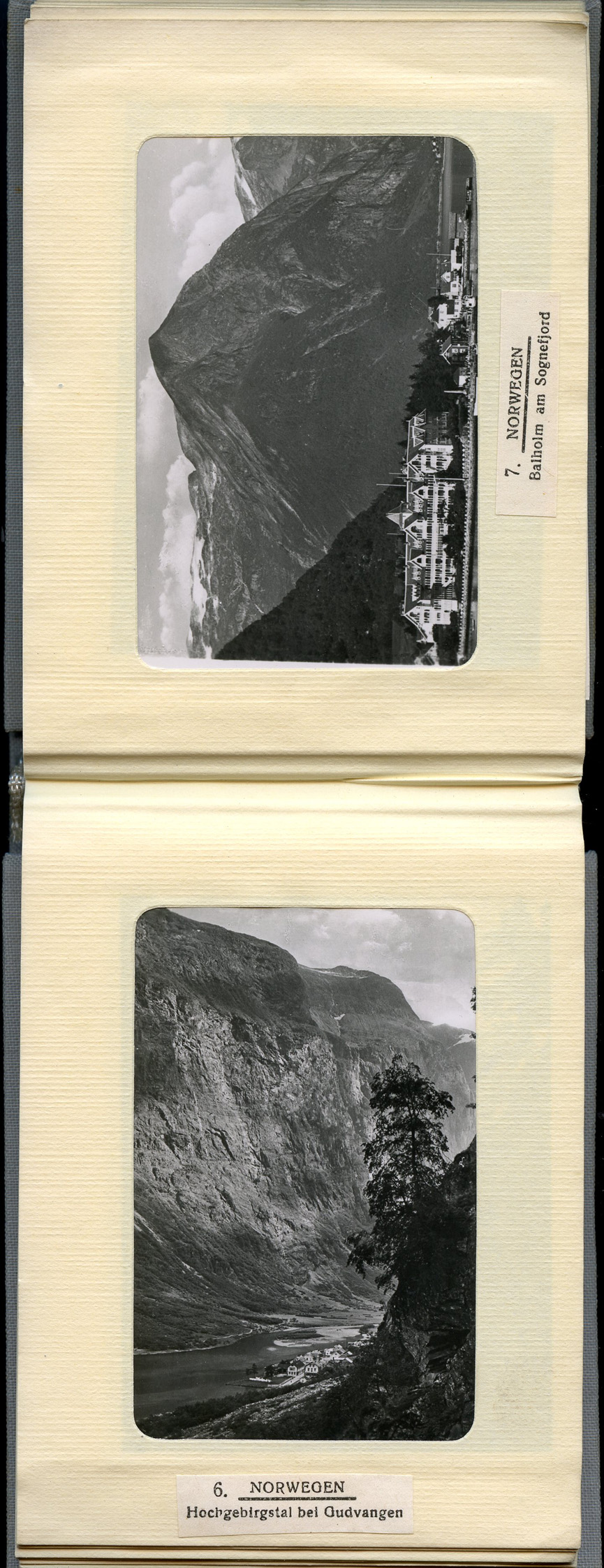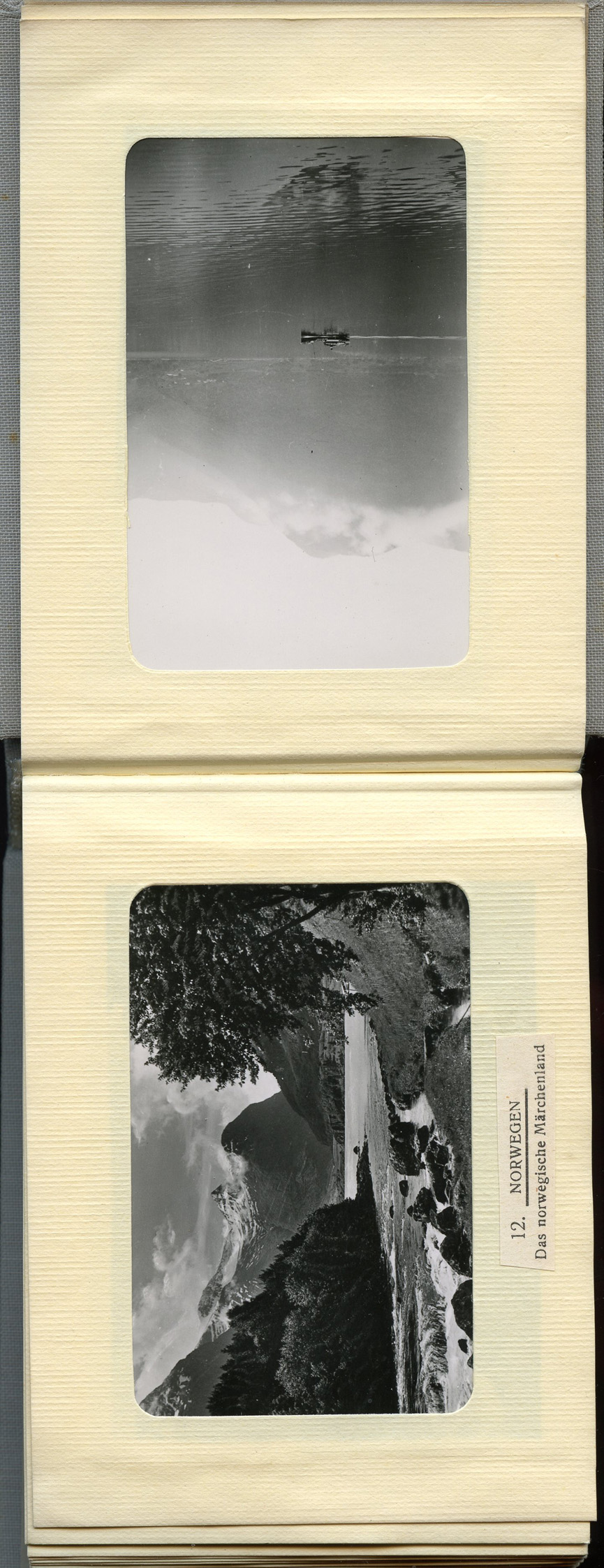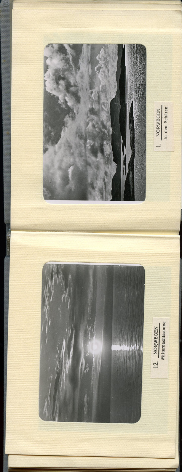 [Below: Inside. Event schedule and menu. 'Norwegenfahrten' (Norwegian Trips).]
