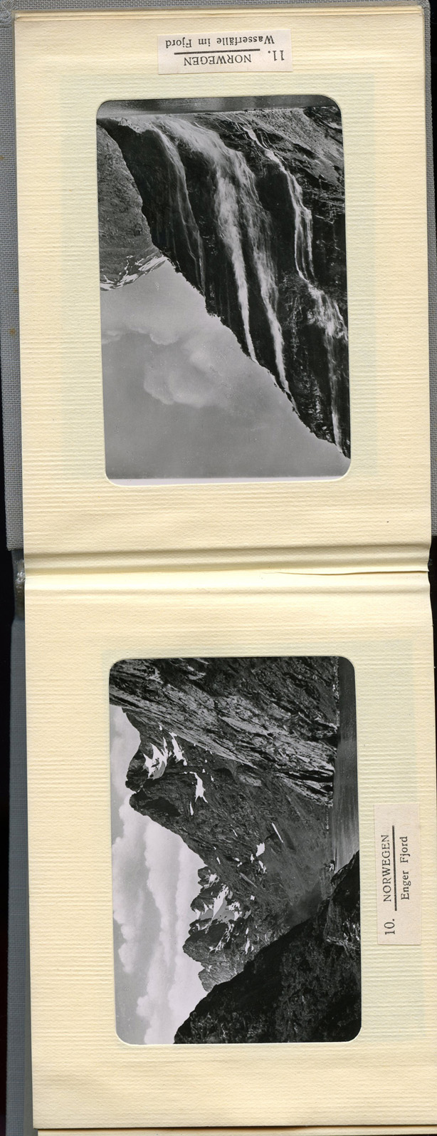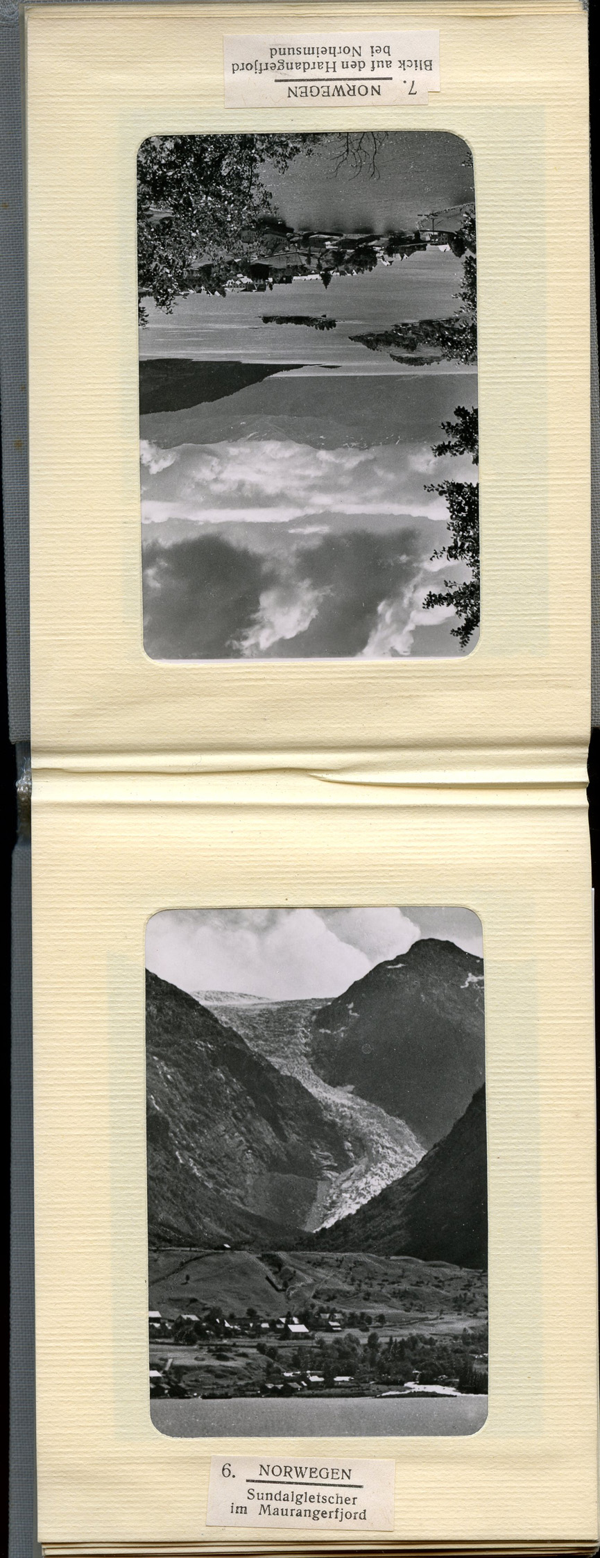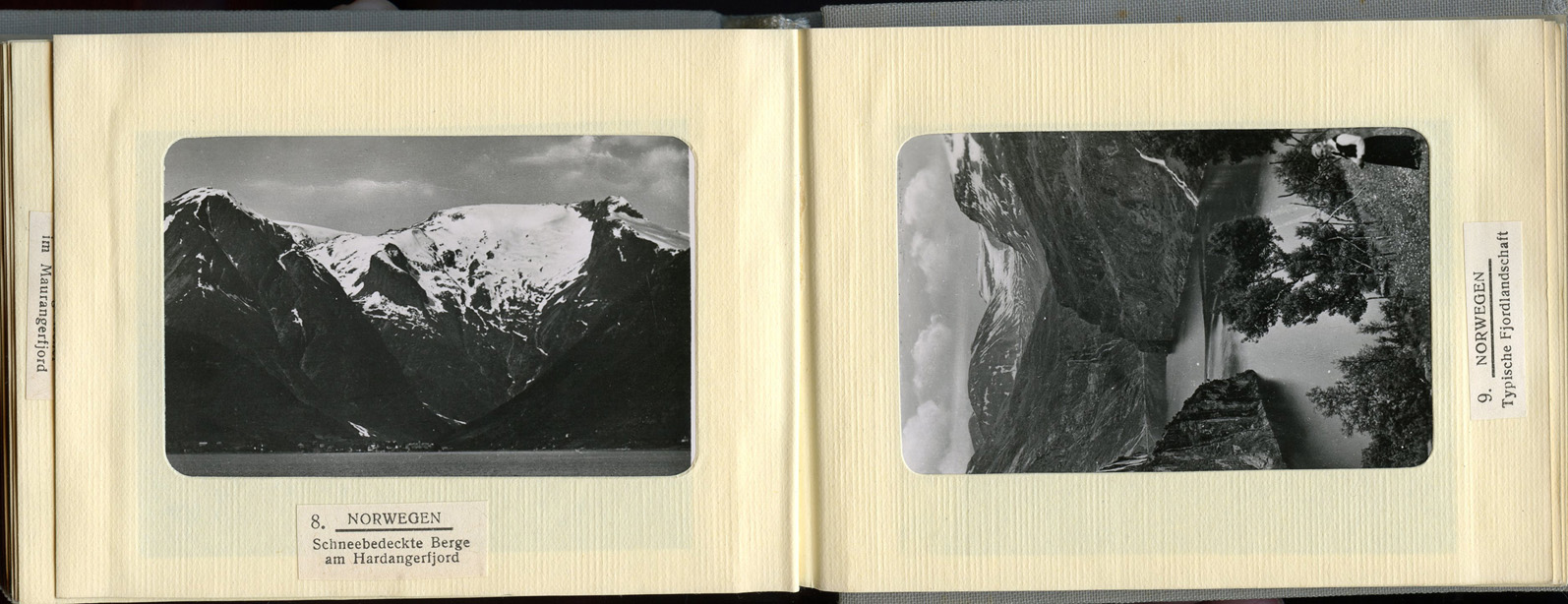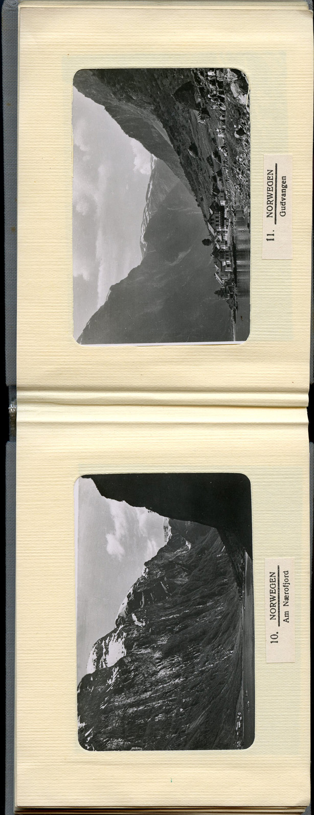 [Below: Inside. Event schedule and menu. 'Norwegenfahrten' (Norwegian Trips).]
