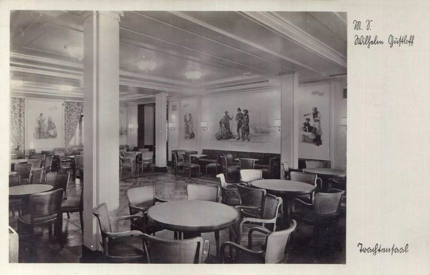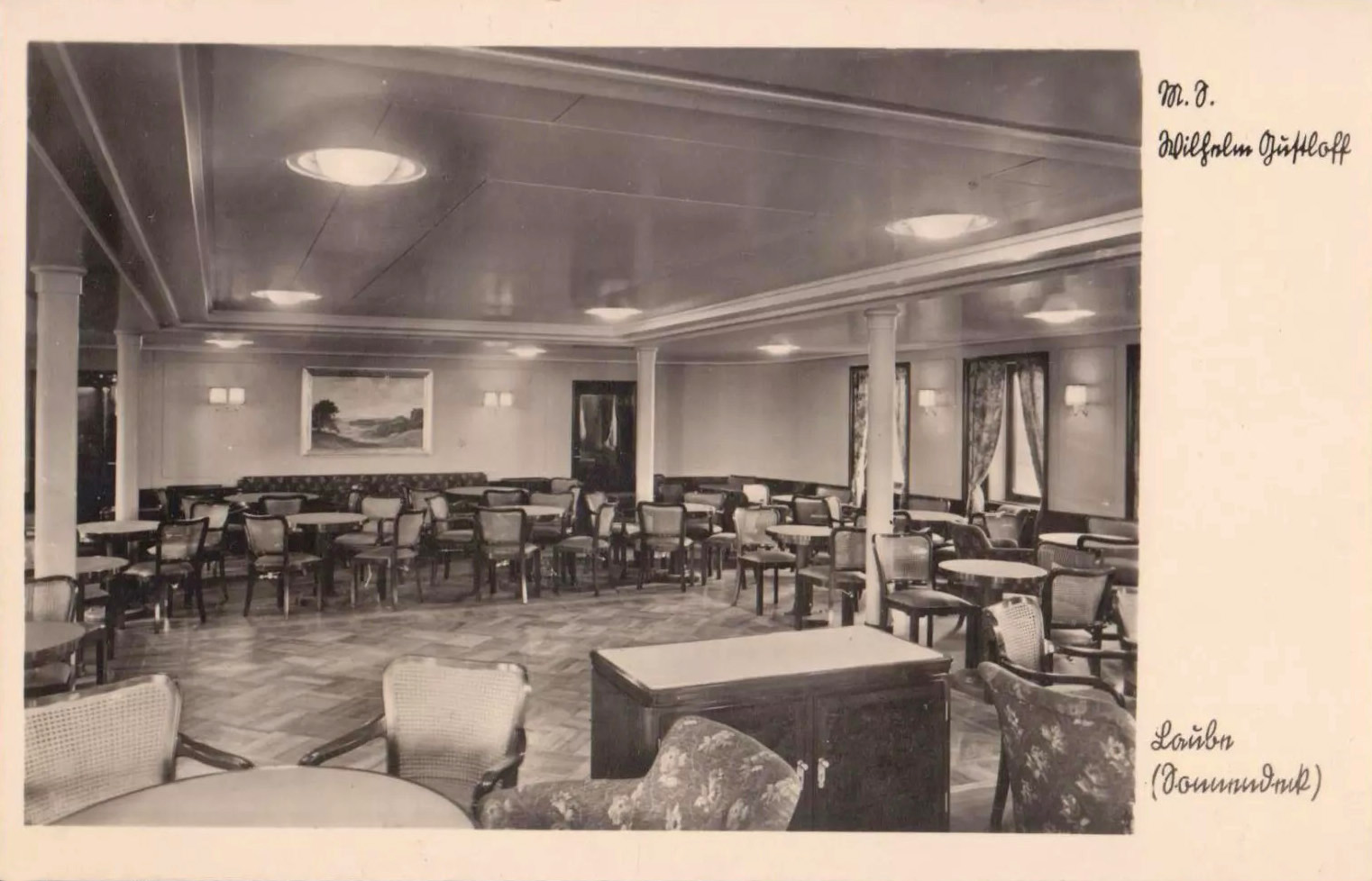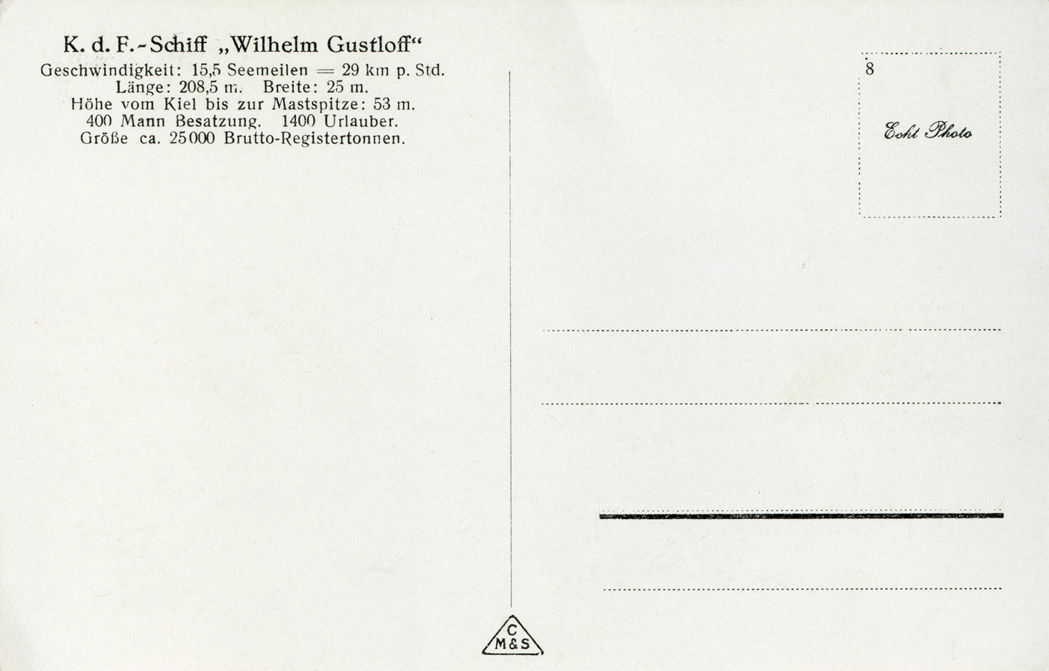 [Below: Rare Wilhelm Gustloff menu. Reverse/front.]