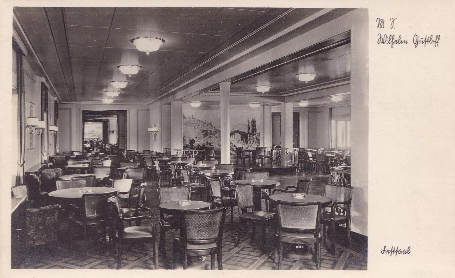 [Below: Rare Wilhelm Gustloff menu. Inside.]