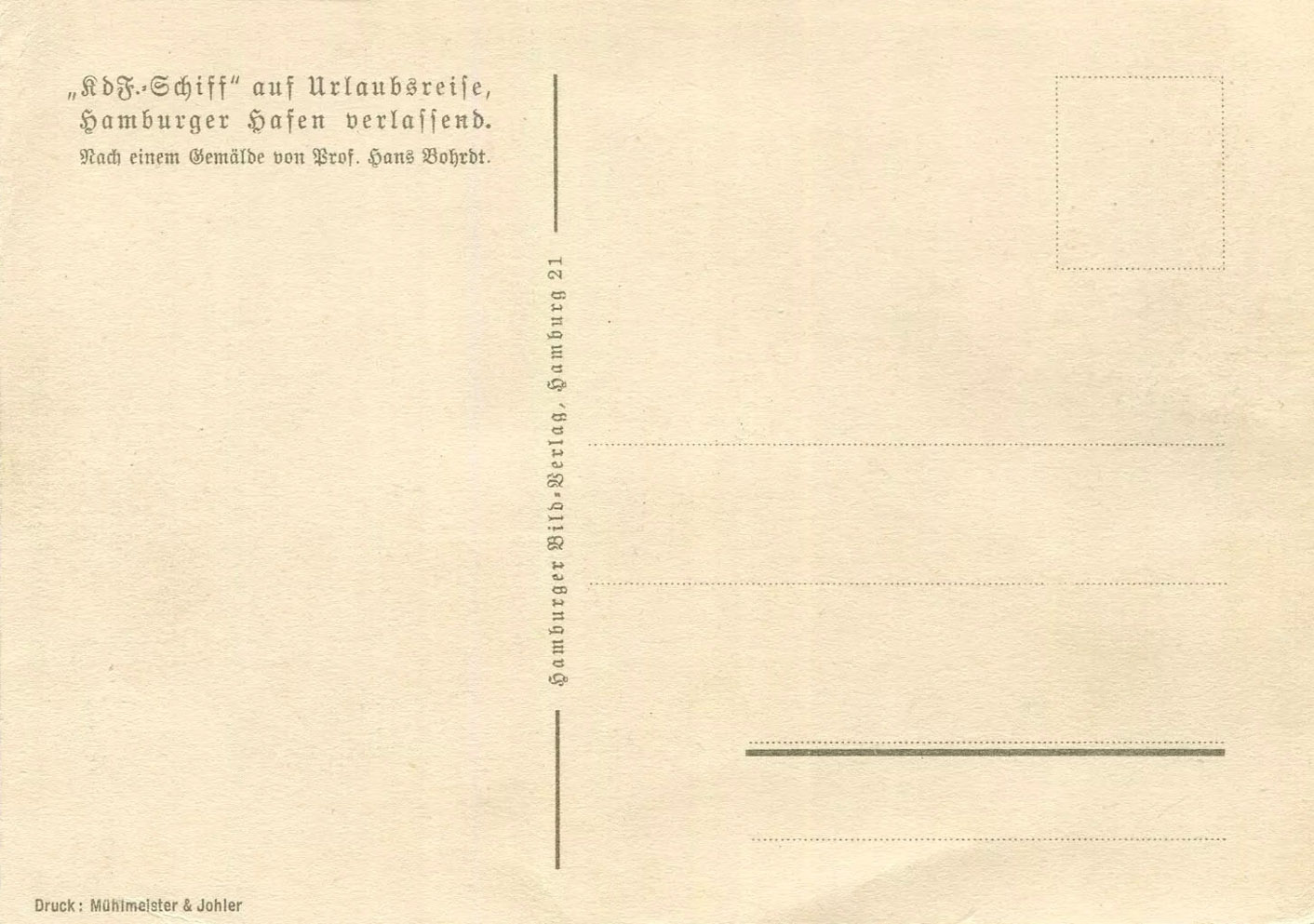 Teilnahmeberechtigt an den KDF=Urlaubsfahrten ist jeder minderbemittelte Volksgenoffe, der sich eine Urlaubsfahrt zum normalen Preise nicht leisten kann. Voraussetzung ist ferner die Mitgliedschaft bei der Deutschen Arbeitsfront oder einem ihr angegliederten Verband.'