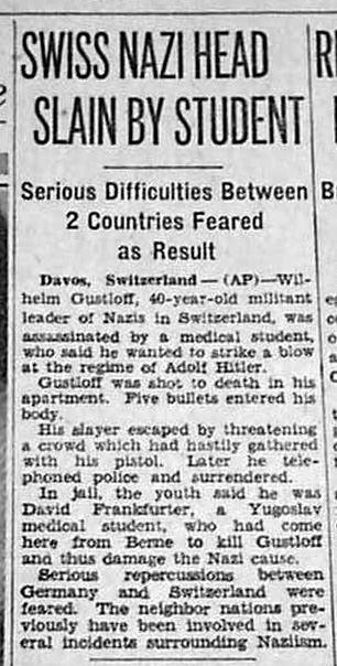 [Below: Wilhelm Gustloff, the man. The KdF cruise ship was named after Swiss/German National Socialist Wilhelm Gustloff, who was murdered by a Jew in 1936.]