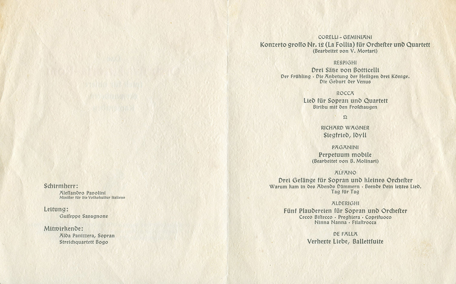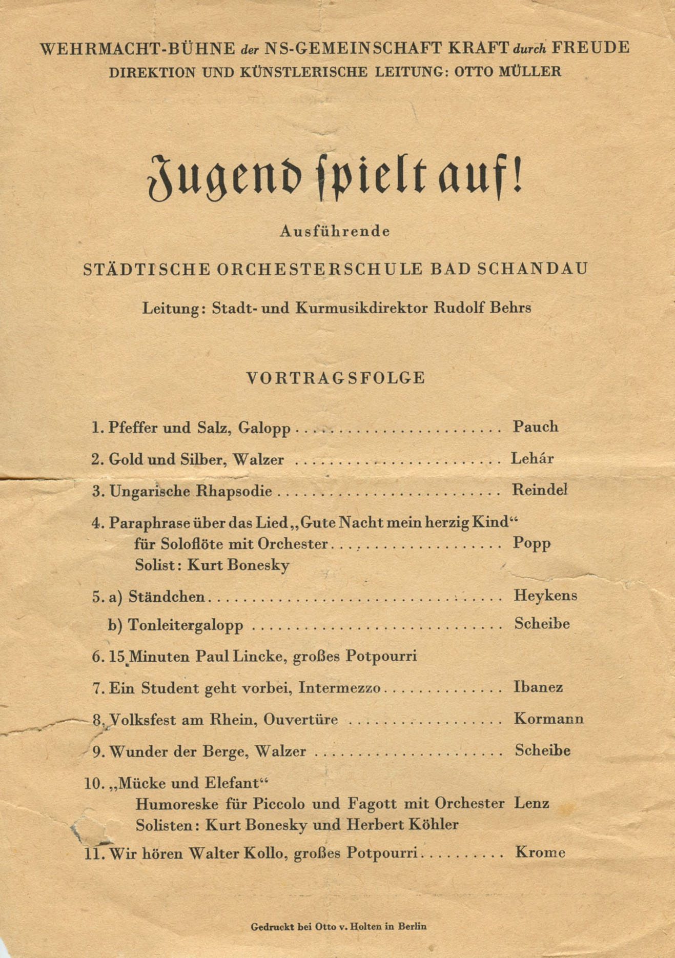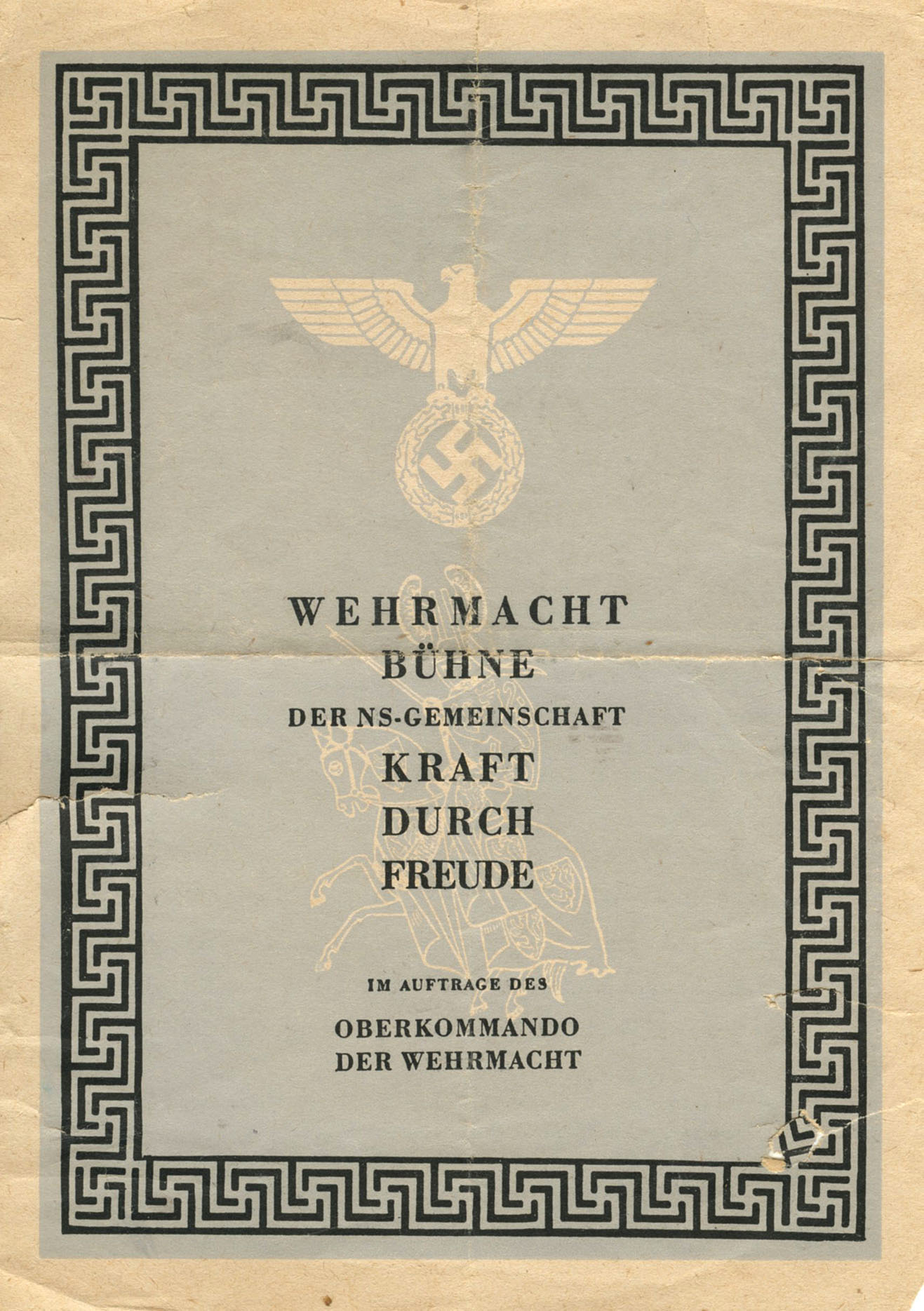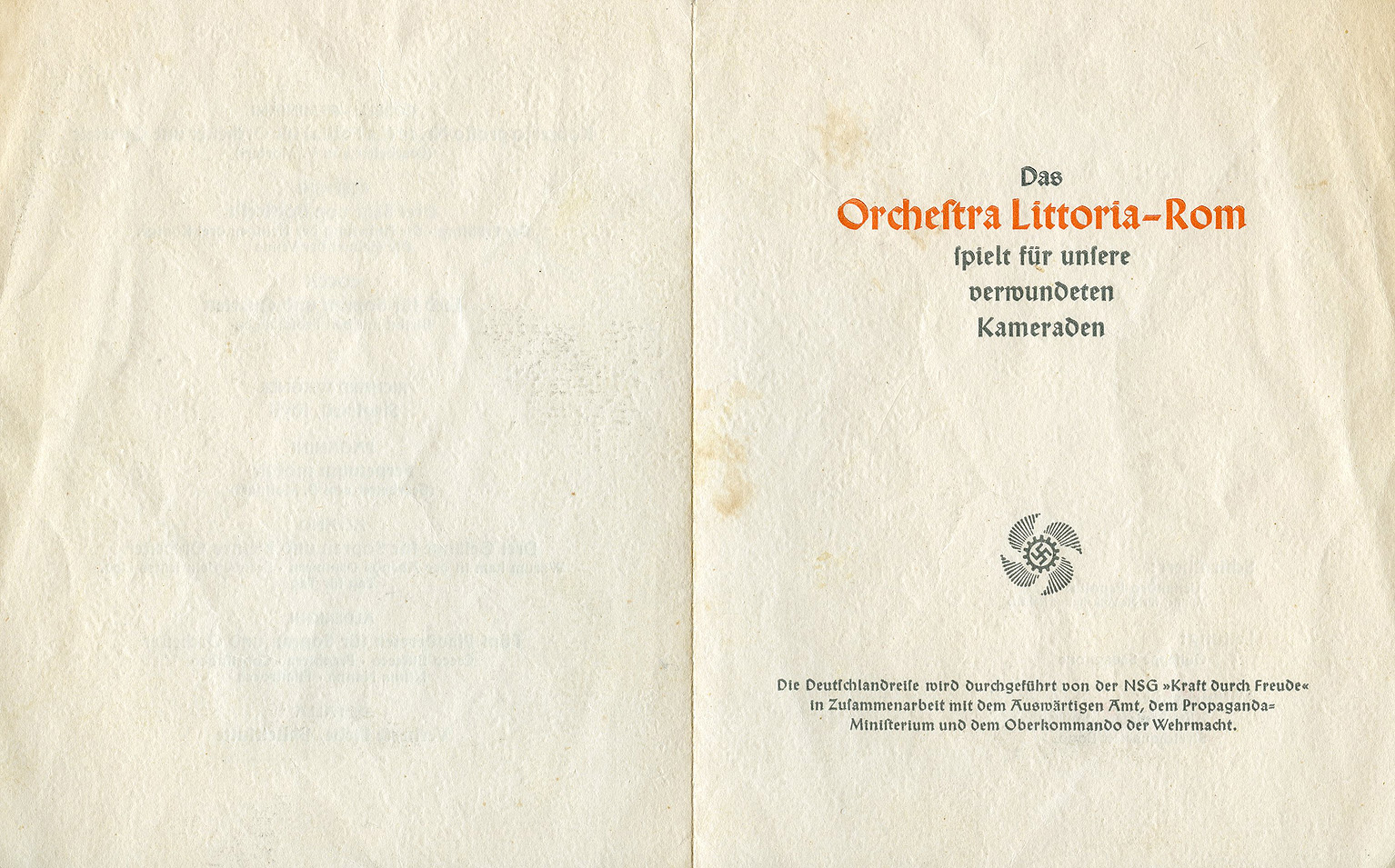 [Below: This is a KdF music schedule, it says 'Das Orchestra Littoria-Rom Spielt für unsere verwundeten Kamerad' (The Orchestra Littoria-Rome play for our wounded comrades).]