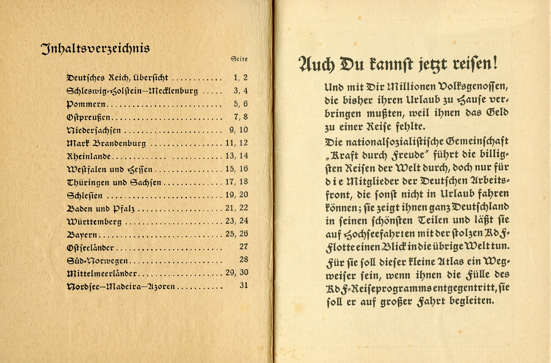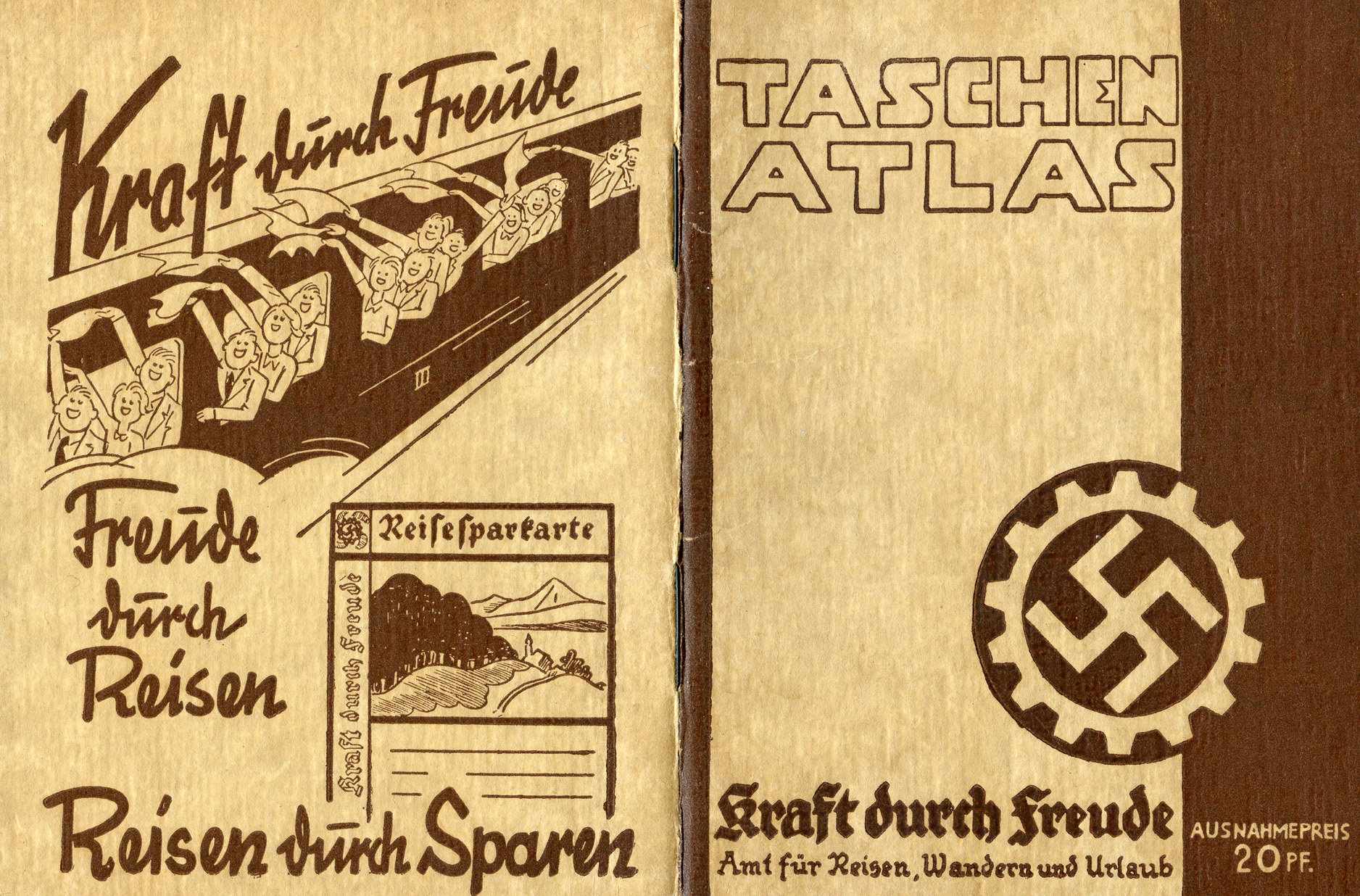 [Below: Strength Through Joy booklet containing various maps. Front/reverse. On the left it says: