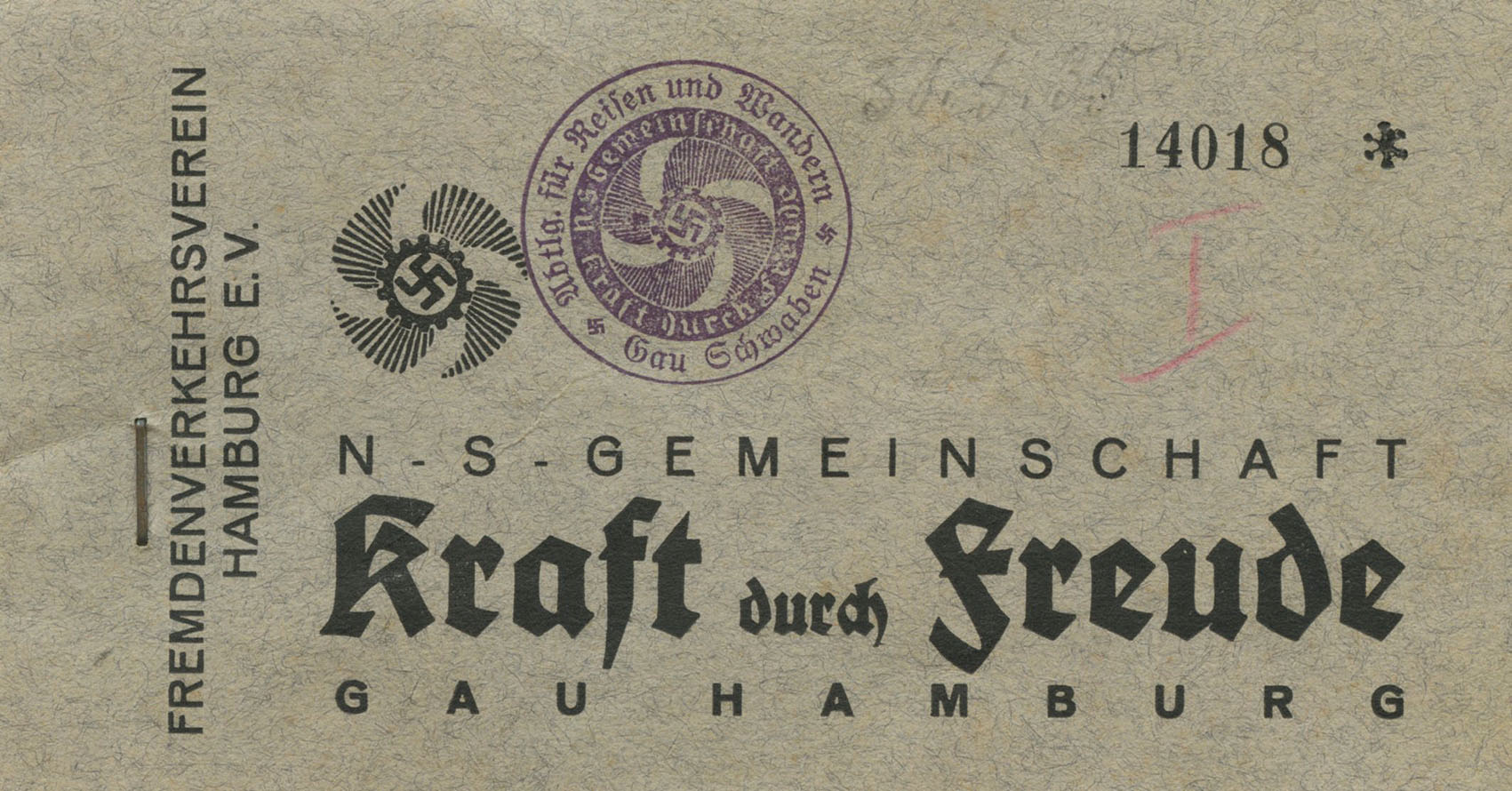 [Below: This is an April 1939 sixteen page booklet from Strength Through Joy. It says: