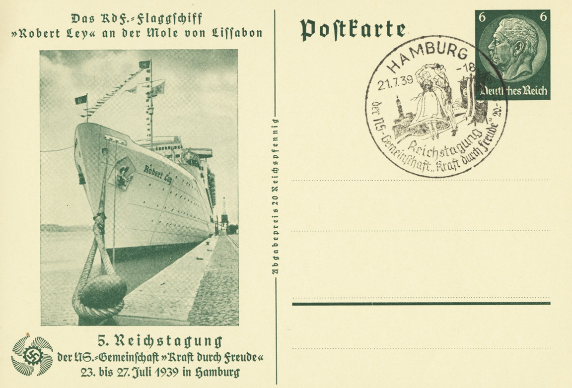 [Below: 'Monte Olivia' Strength Through Joy cruise to Norway postcard from July 1935. Click to enlarge.]