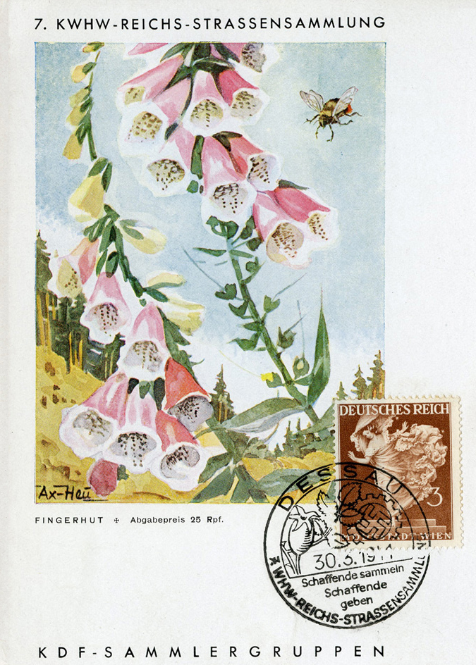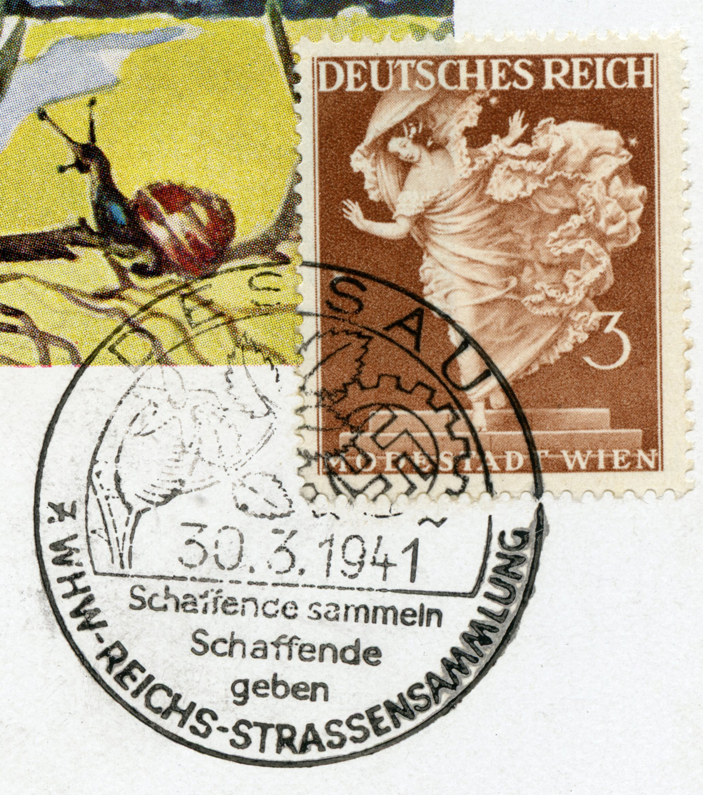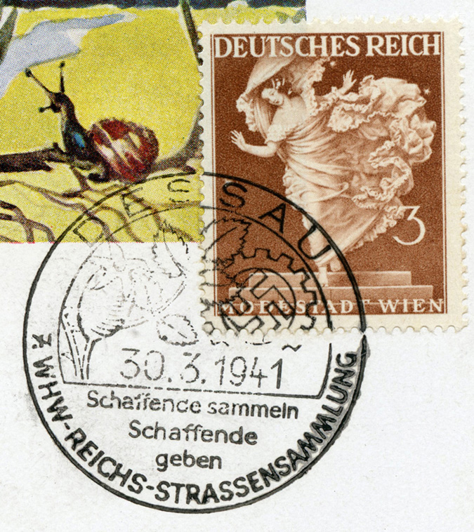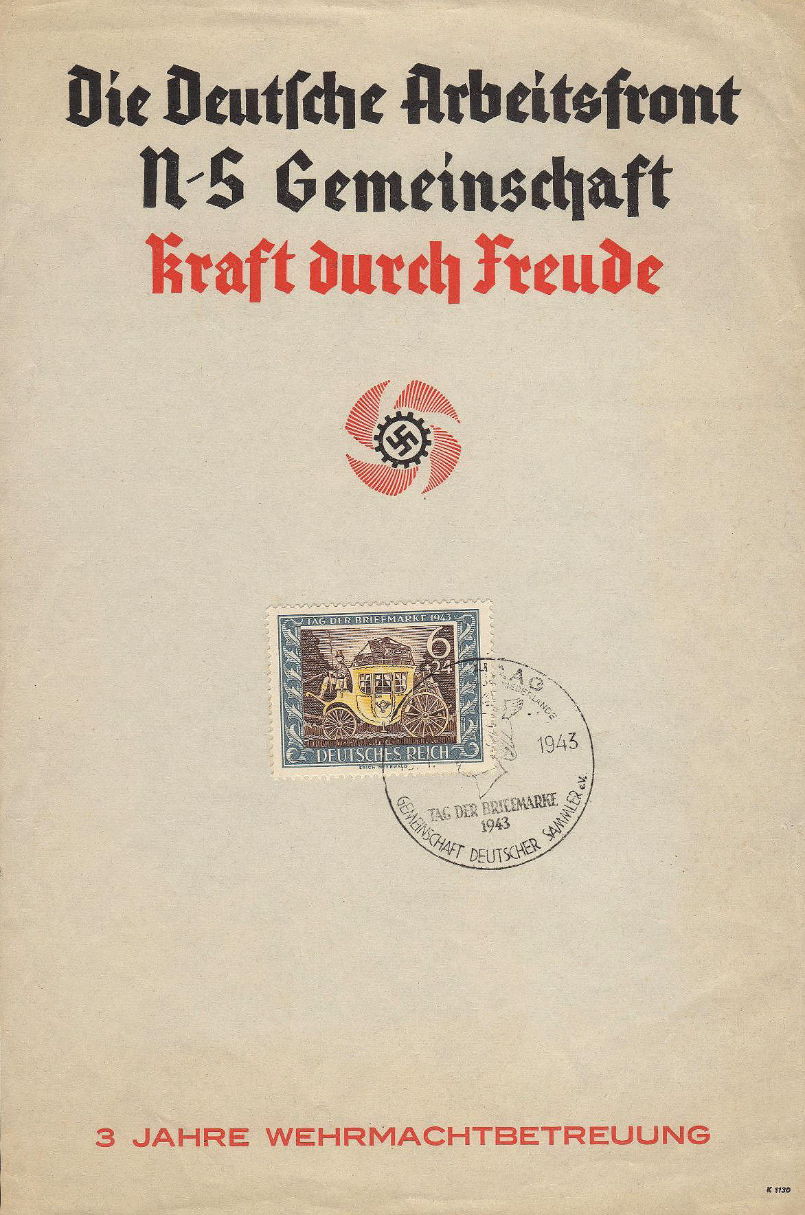 [Below: This is a sheet made for collectors from 1943. At the bottom it says: '3 Jahre Wehmachtbetreuung' (3 years Wehmacht support).]