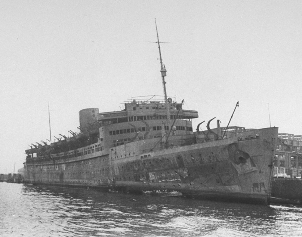 The Japanese raised and repaired her in July 1944, but she was then bombed by a B-24 on August 8th of that year. The Japanese would then raise and repair her a second time, renaming her the Kotobuki Maru, converting the ship into a troopship. On July 25, 1945 she was beached by damage from an aircraft raid in Japan, finally being scrapped in 1949.]