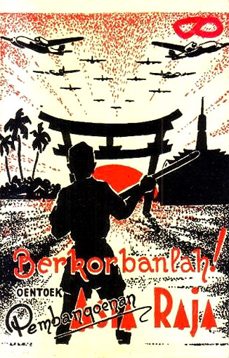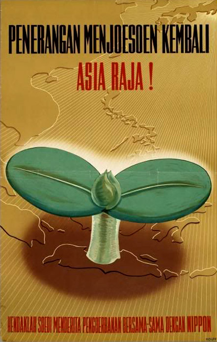 [Below: This poster roughly says: 'Penerangan Menyoesoen Kembali Asia Raya' = 'Information to Rebuild Great Asia']