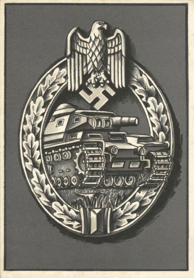 [Below: Here is a postcard showing the Tank Combat Badge.]