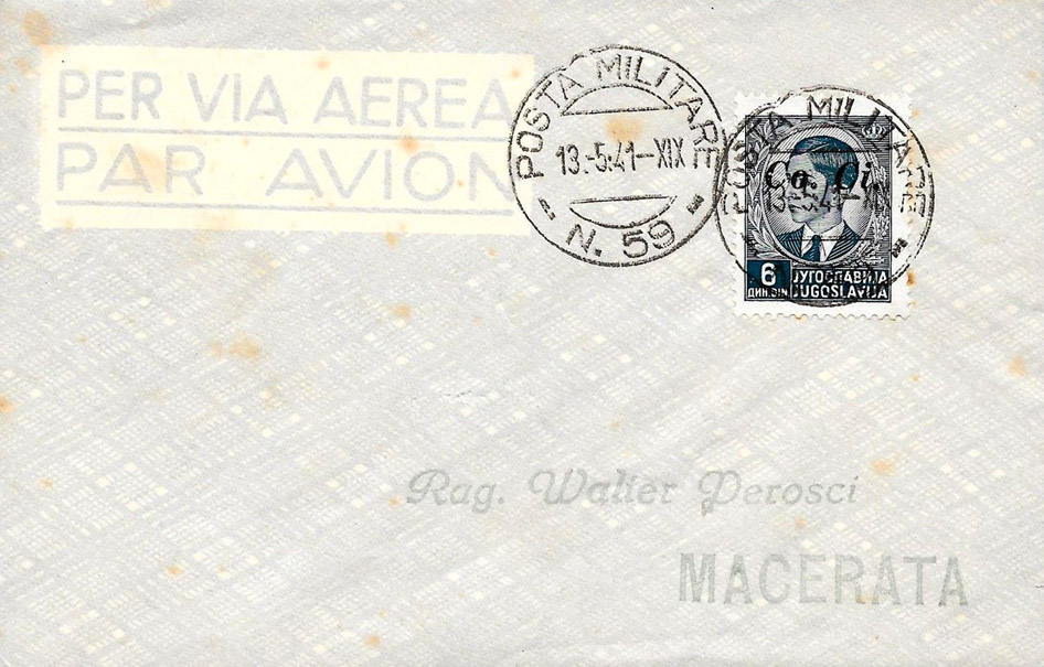 [Below: 1941 Militairy Airmail envelope to Macerata]