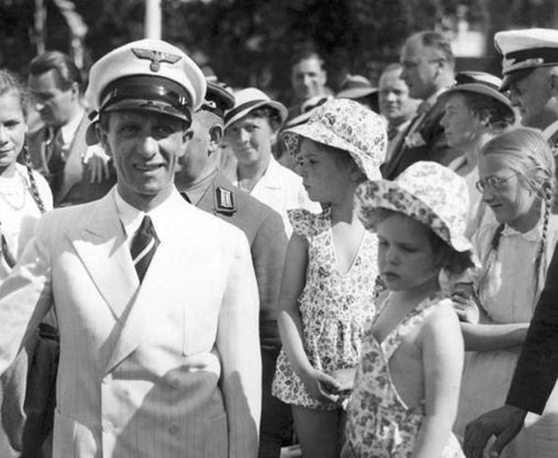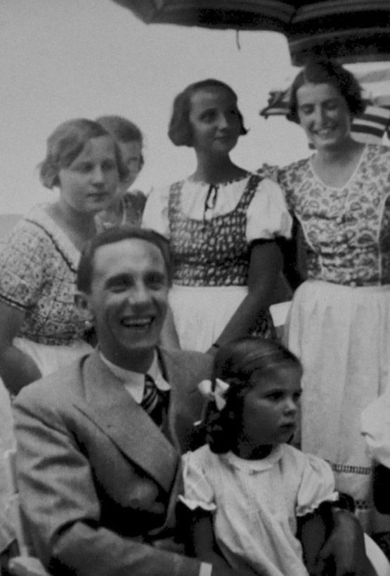 [Below: Joseph Goebbels with Helga and Hilde, circa 1937.]