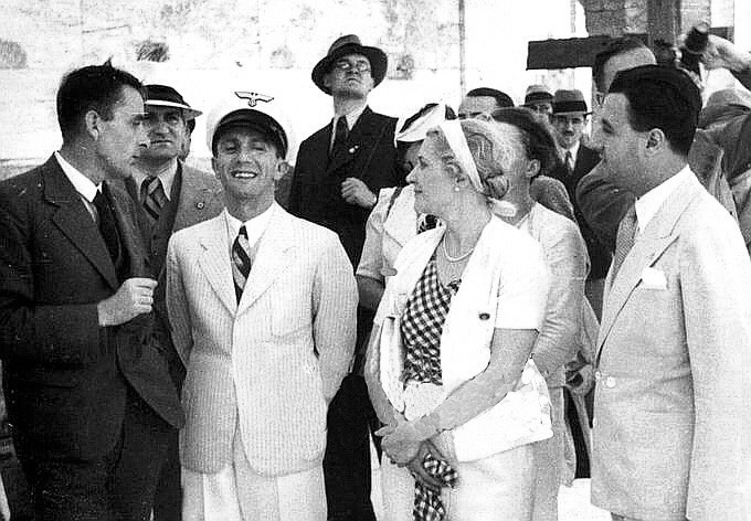 [Below: Albert Speer at an airport with Hilde and Albert Jr., 1942.]