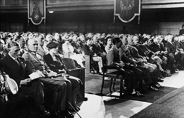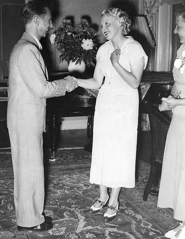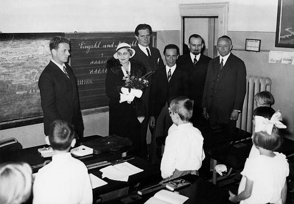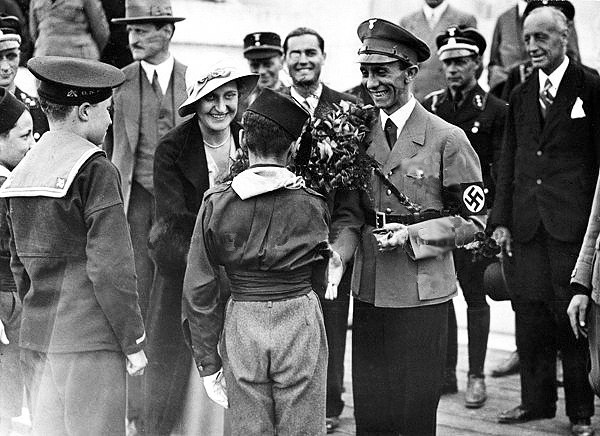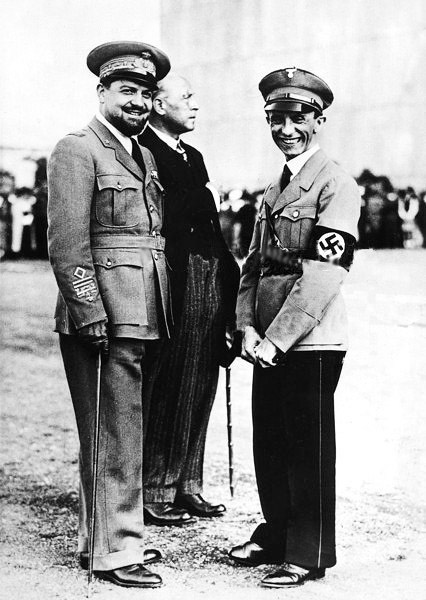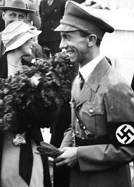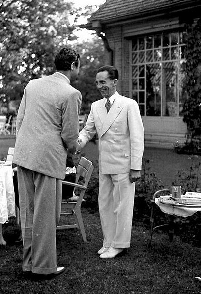 [Below: Joseph Goebbels greeting the wife of the famous boxer Max Schmeling, 1936.]
