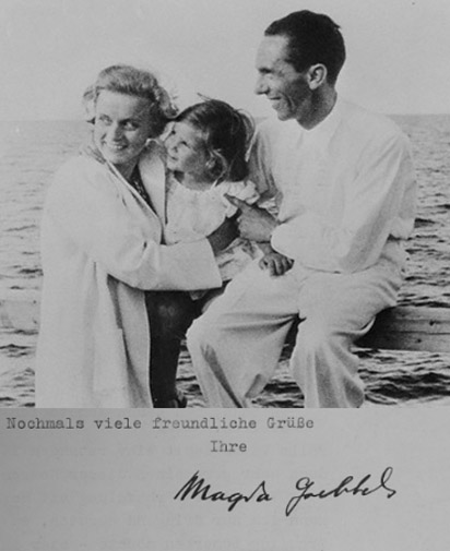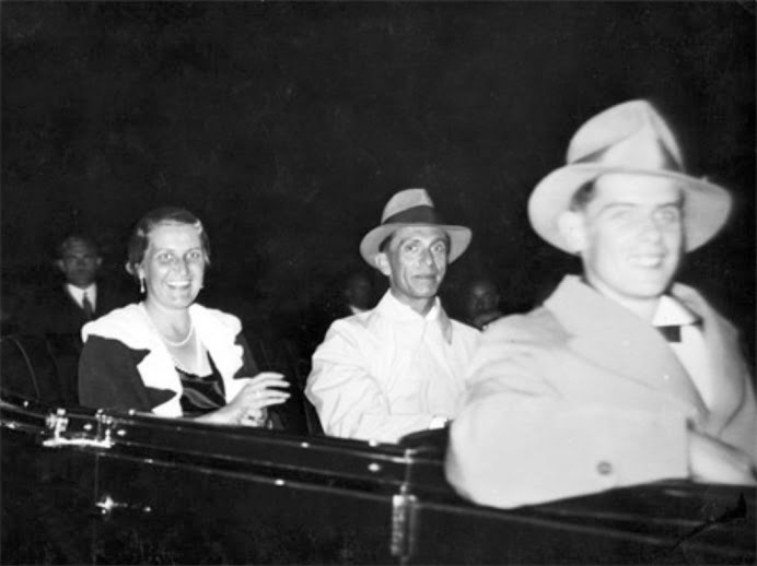 [Below: Joseph and Magda Goebbels with Dr. Karl Brandt. Dr. Brandt was murdered after the war by the Allies (hung June 2, 1948). He was Hitler's escort physician and an SS officer.]