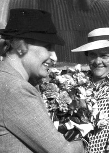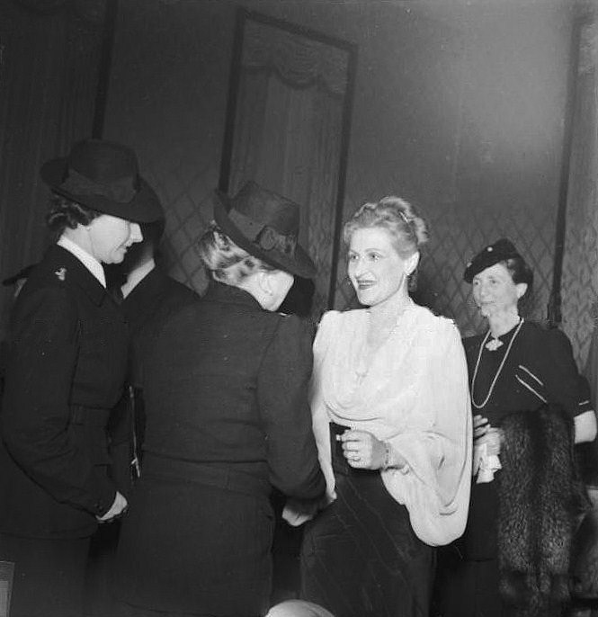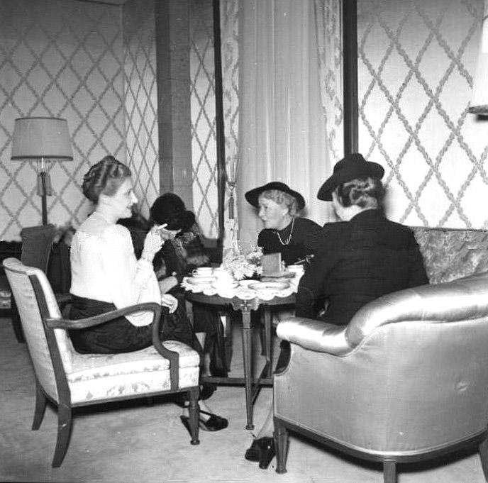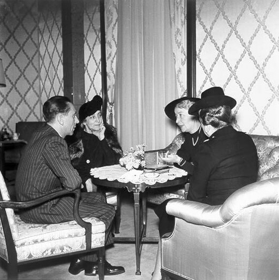 [Below: Magda Goebbels welcoming women to the international Frauentreffens in 1941.]