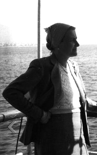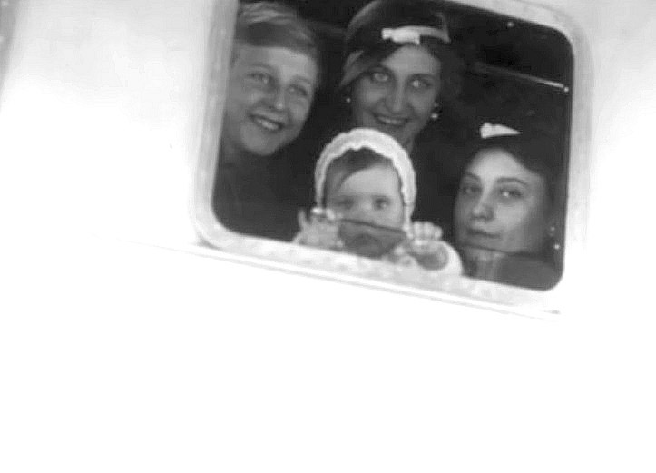 [Below: Magda with Helga, Harald Quandt and Maria Goebbels (the children's aunt) at an airport in 1933.]