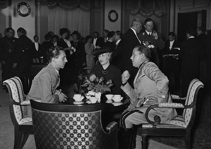 [Below: Joseph Goebbels and actress Jenny Jugo at a press ball in Berlin.]