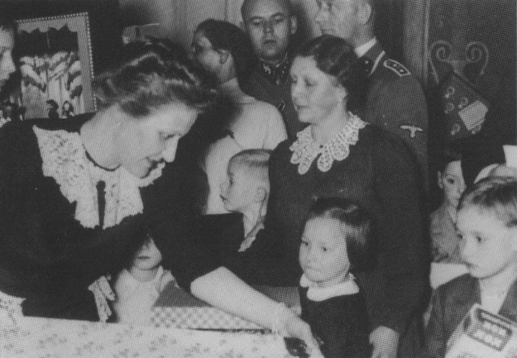 [Below: Magda Goebbels with her daughters Helga and Hilde with Edda Ciano, daughter of Benito Mussolini.]