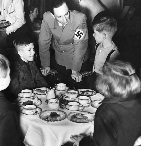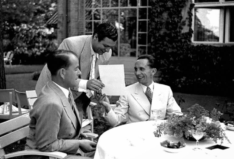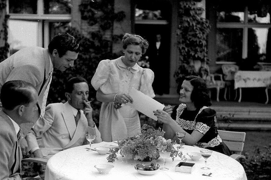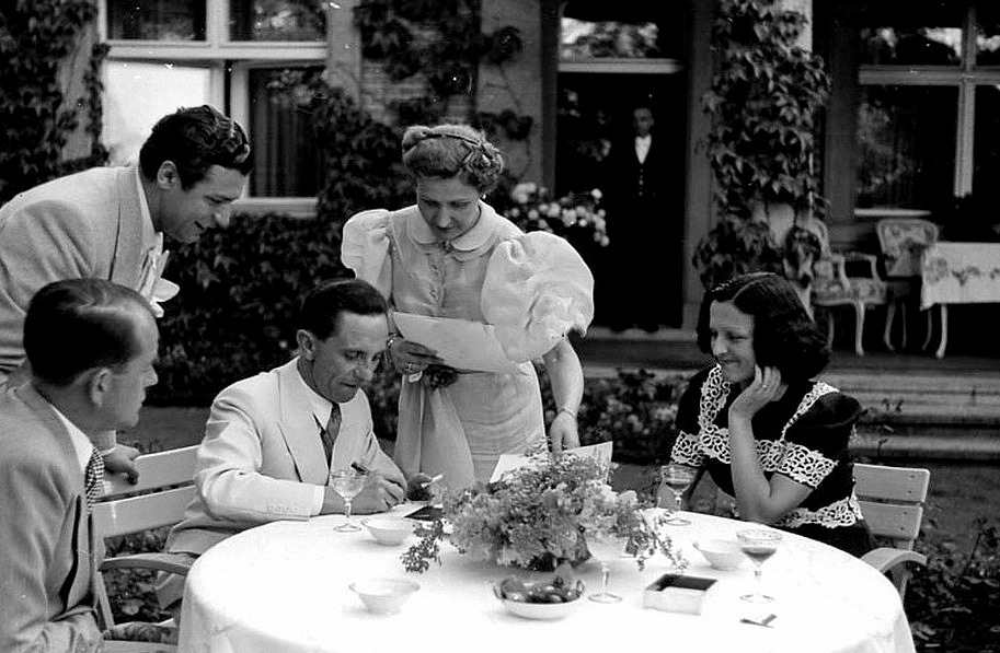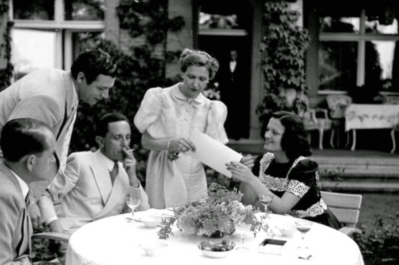 [Below: Jospeh Goebbels replaces his wife in the conversation.]