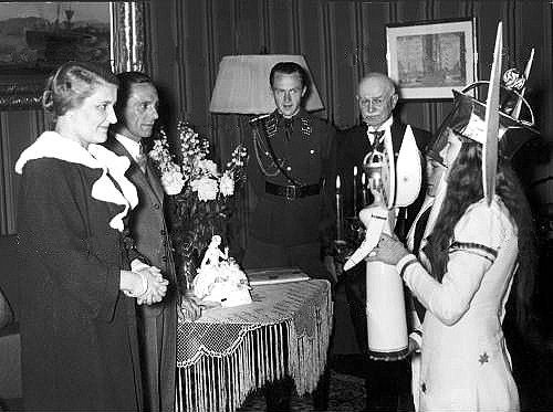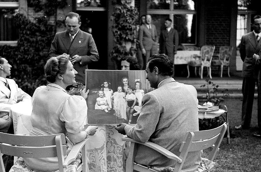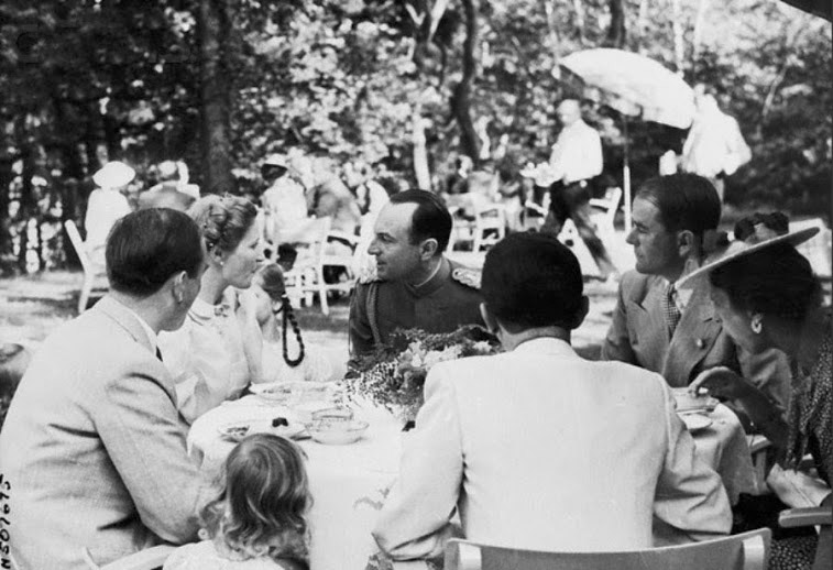[Below: The following pictures were taken during the visit of Yugoslavian prince to the Goebbels home. They show Magda sharing recent photos of her children.]