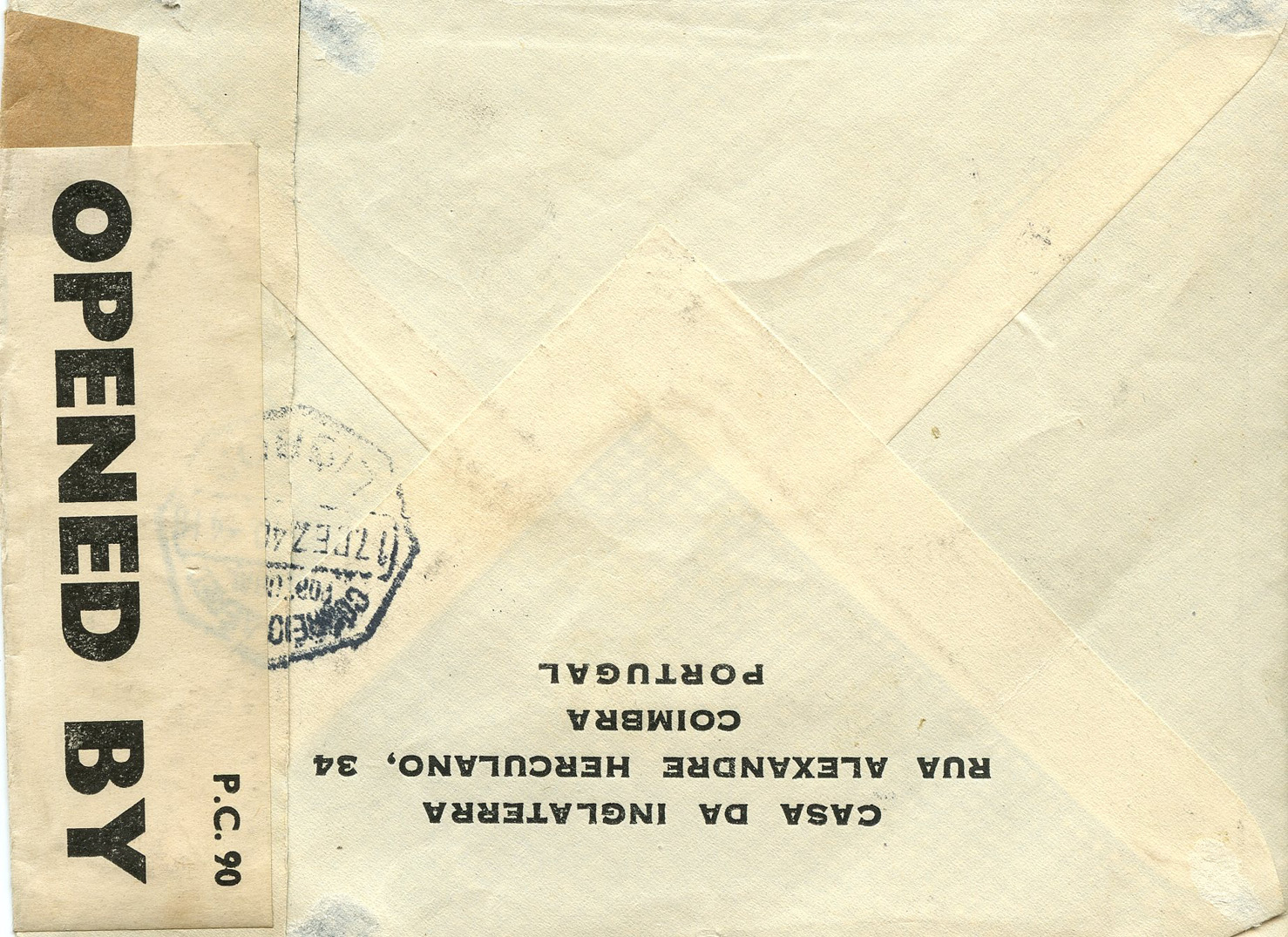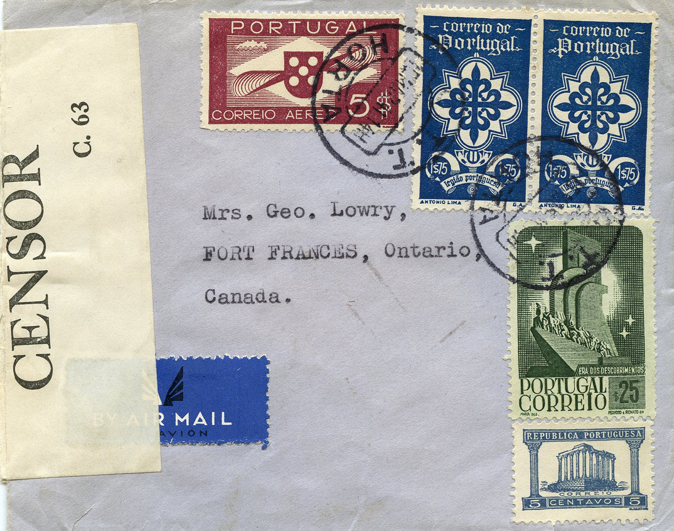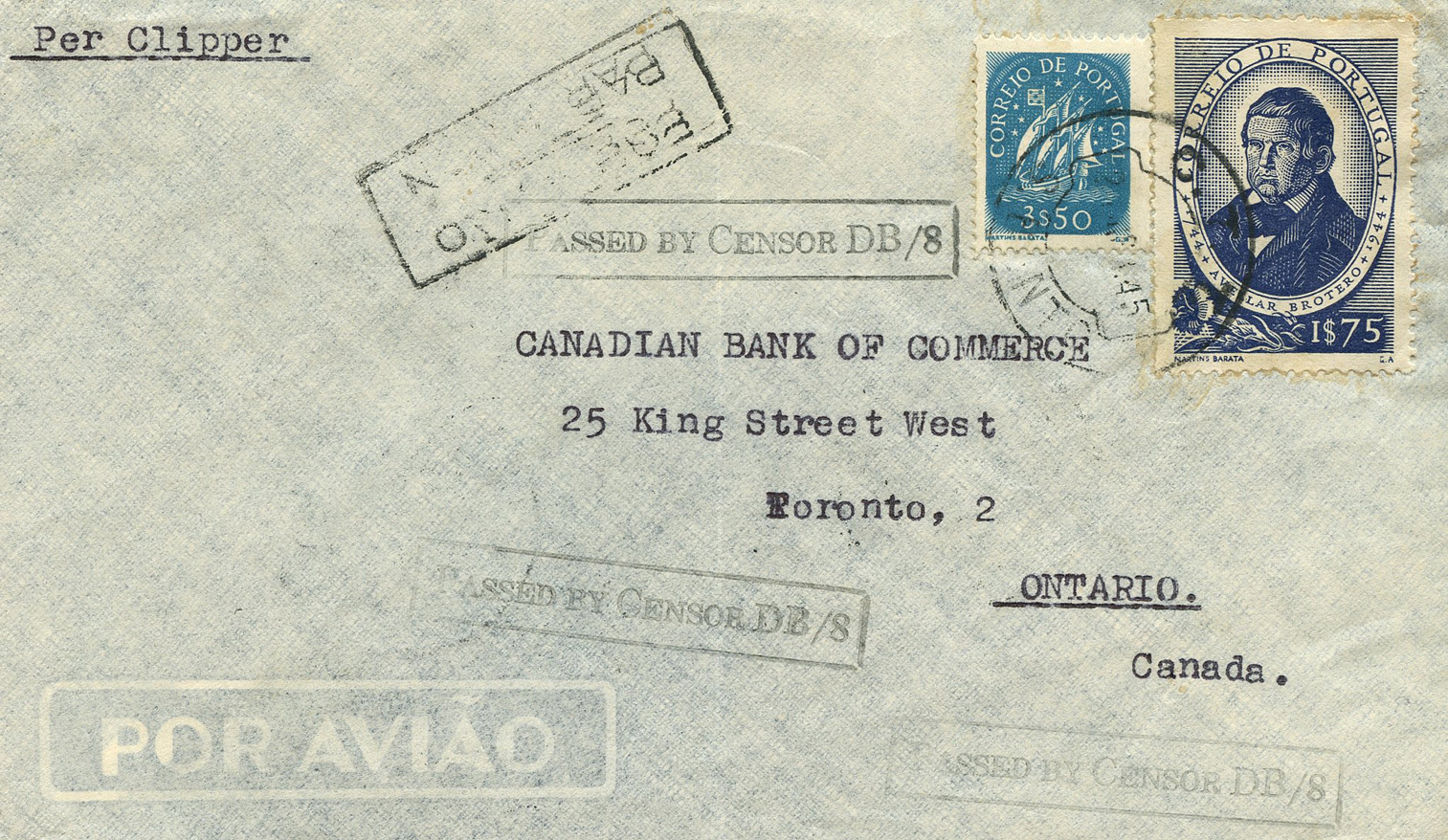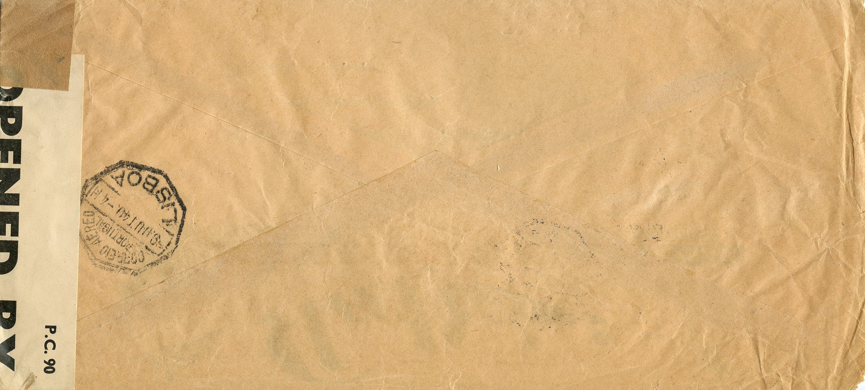 [Below: Here is an envelope that was canceled in October 8, 1940, and sent to the USA, where it was censored.]