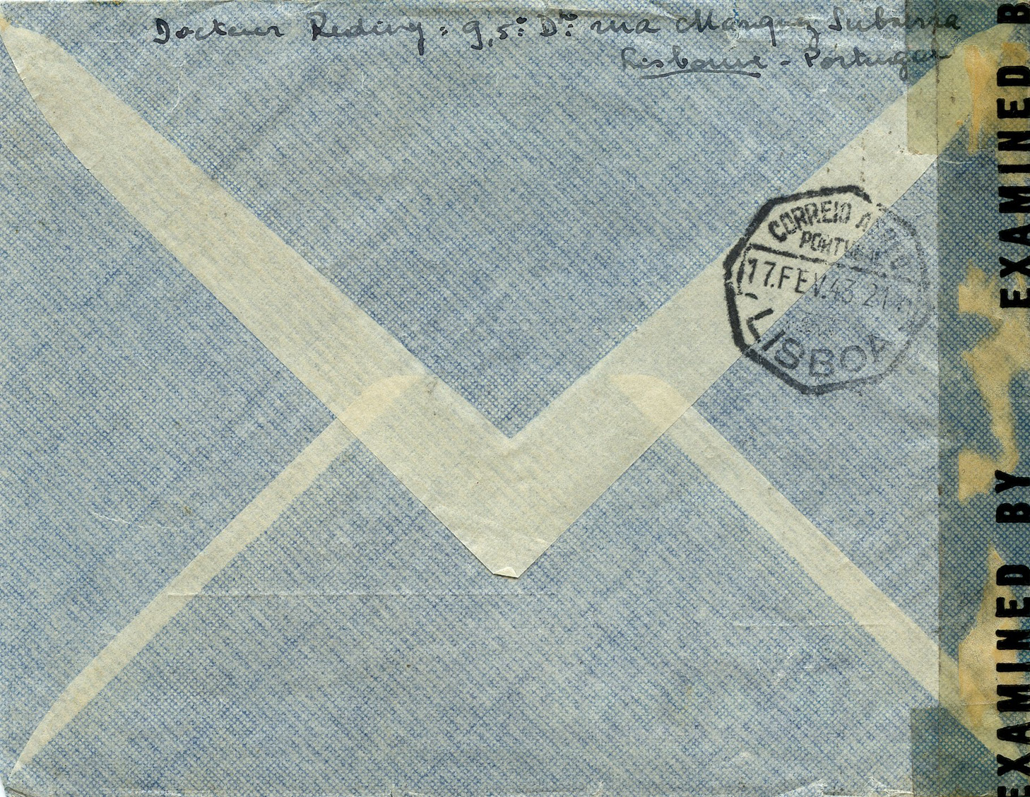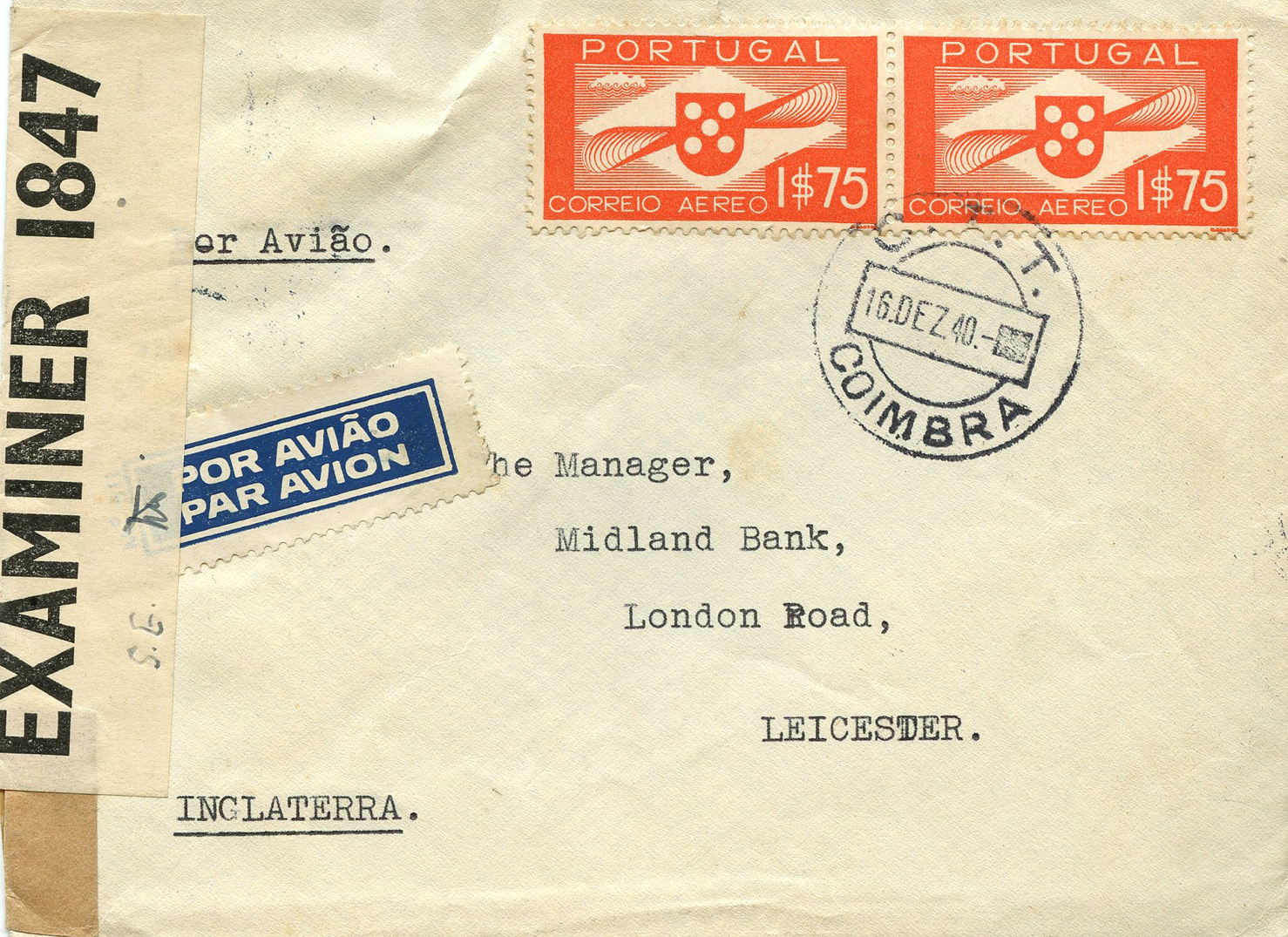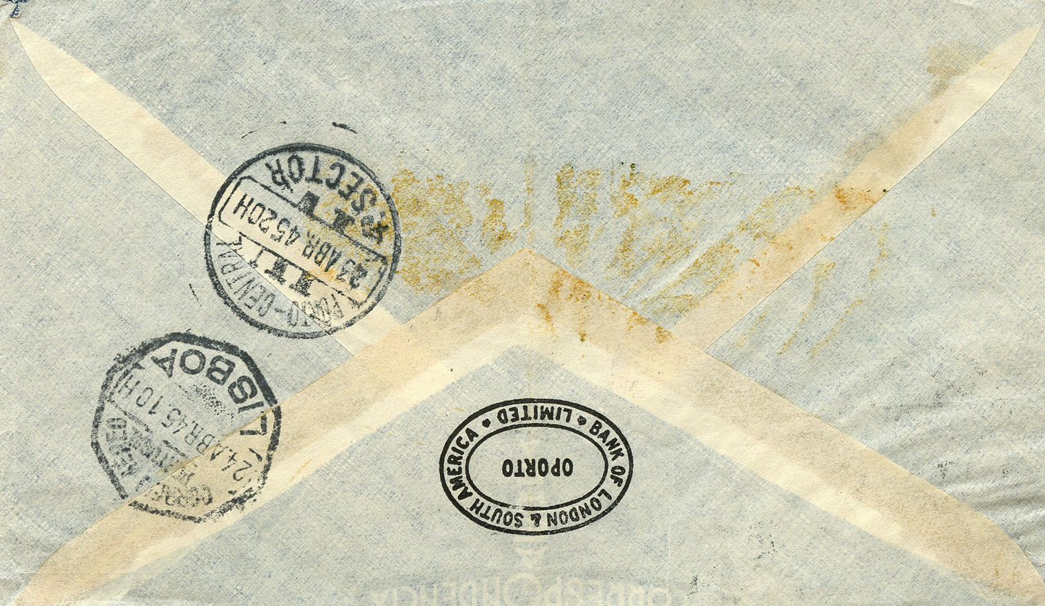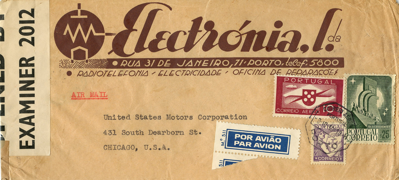 [Below: Here is an envelope that was canceled in October 8, 1940, and sent to the USA, where it was censored.]