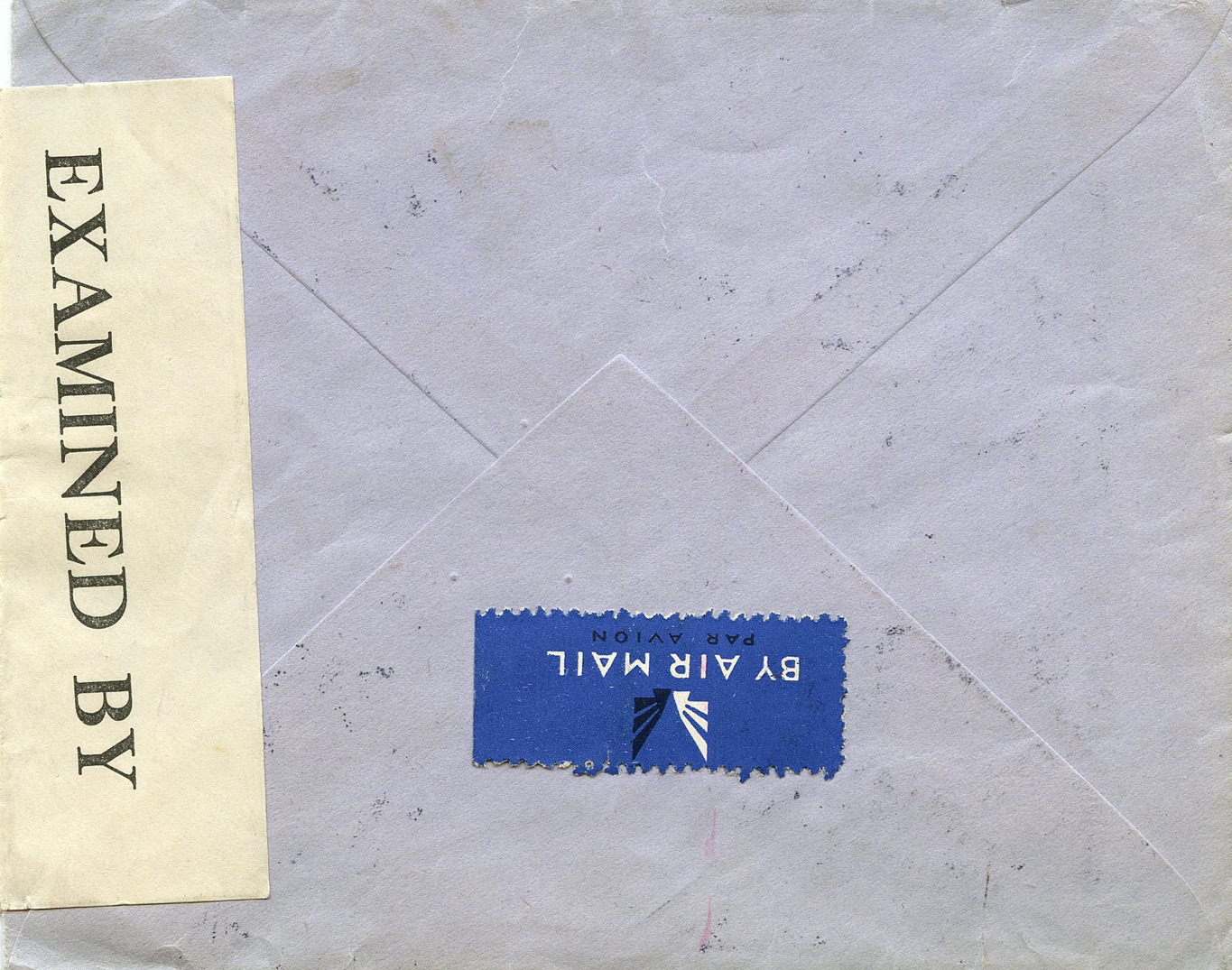 [Below: Here is an envelope that was canceled on December 16, 1940 and sent to England, where it was censored.]