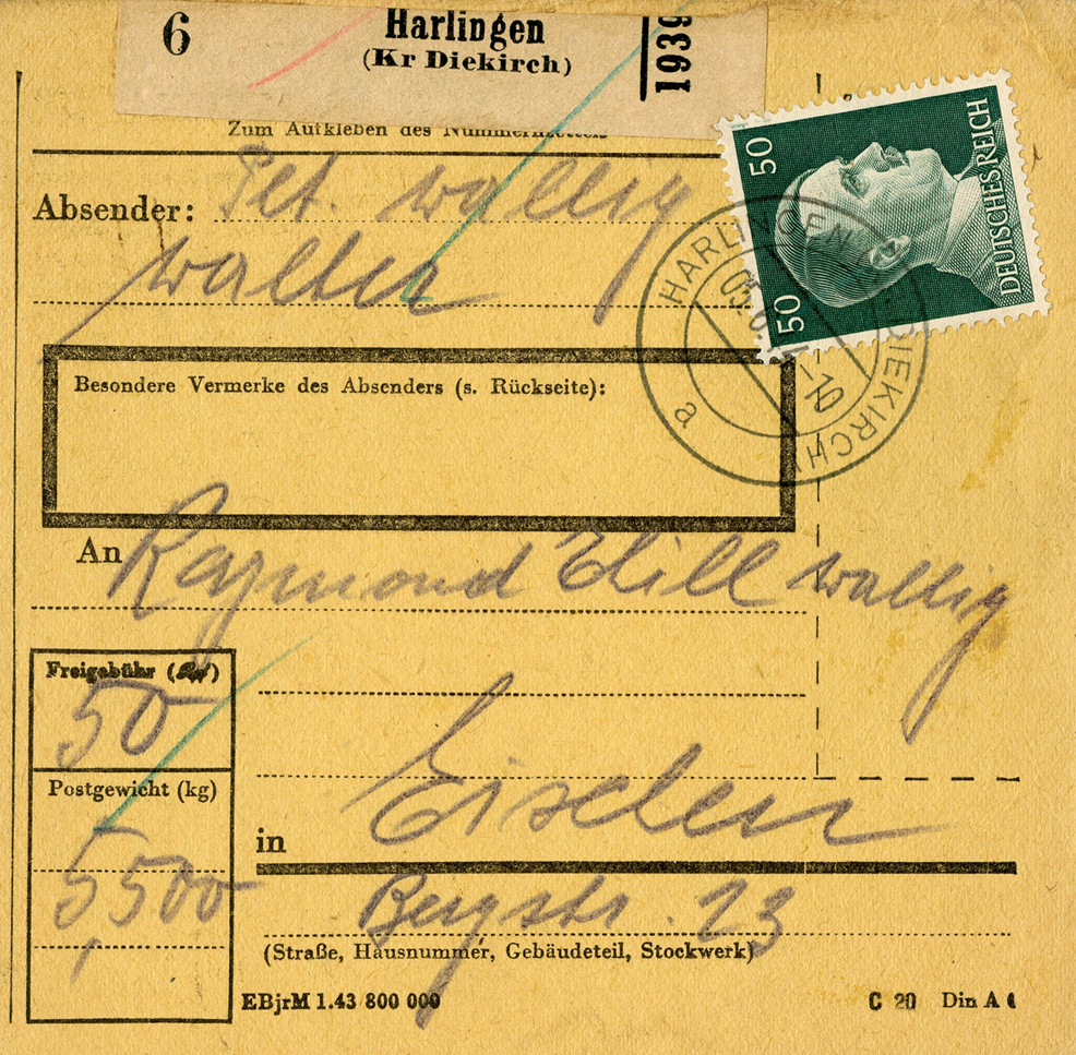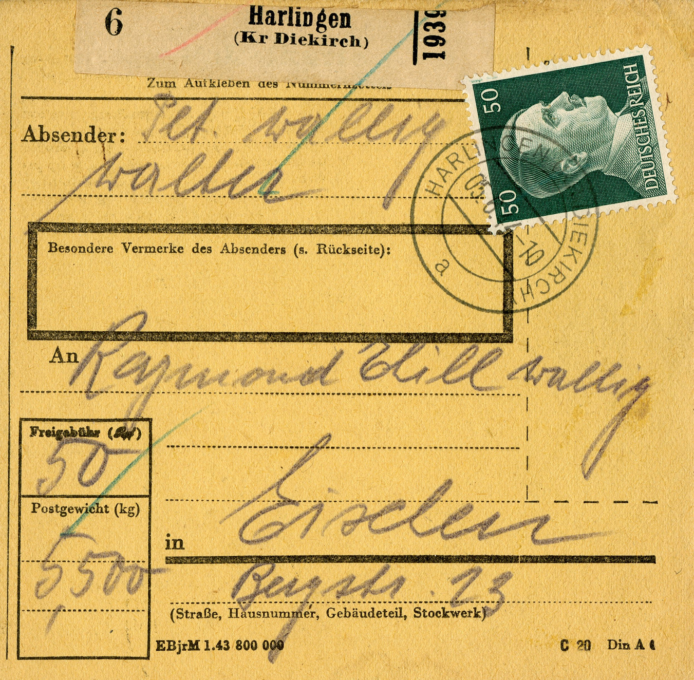 [Below: Here is a parcel receipt from Harlingen, June 5, 1944.]