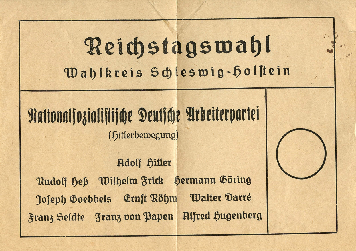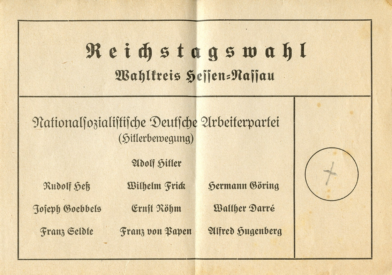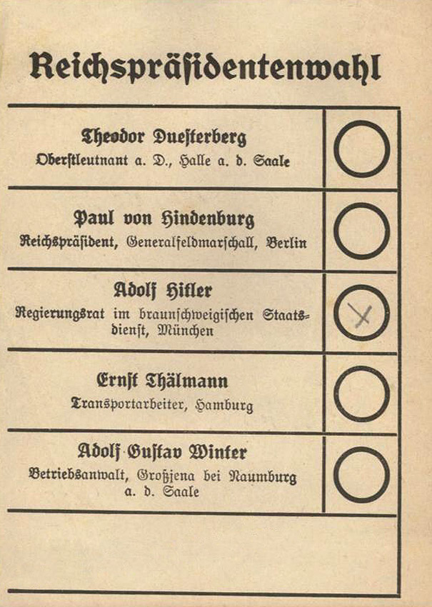 [Below: This ballot is from sometime in 1932 and shows Adolf Hitler running alone.]