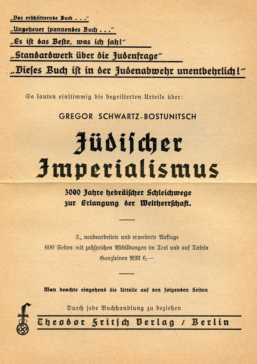 [Below: This is a booklet for a book called Jüdischer Imperialismus: 3000 Jahre hebräischer Schleichwege