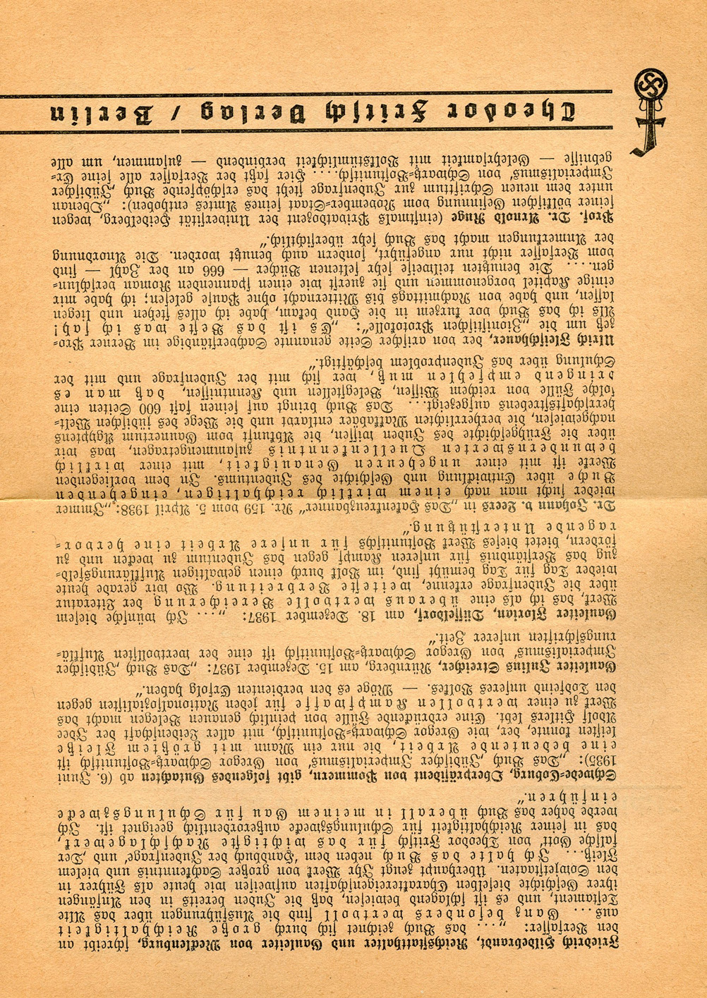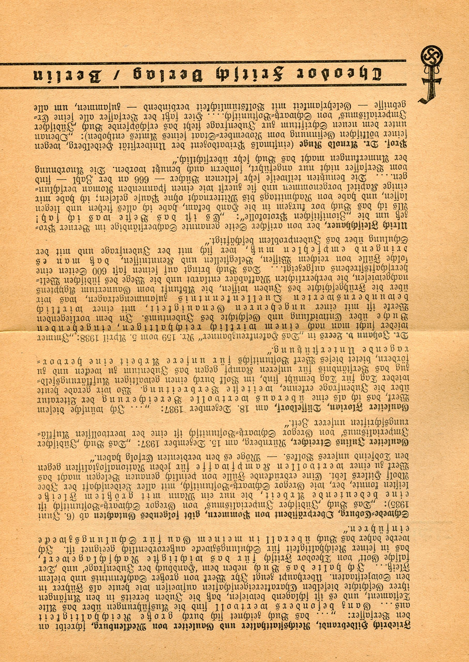 [Below: The strange symbol which adorns the pages. This is a combination of Theodor Fritsch, with a swastika beneath it.]