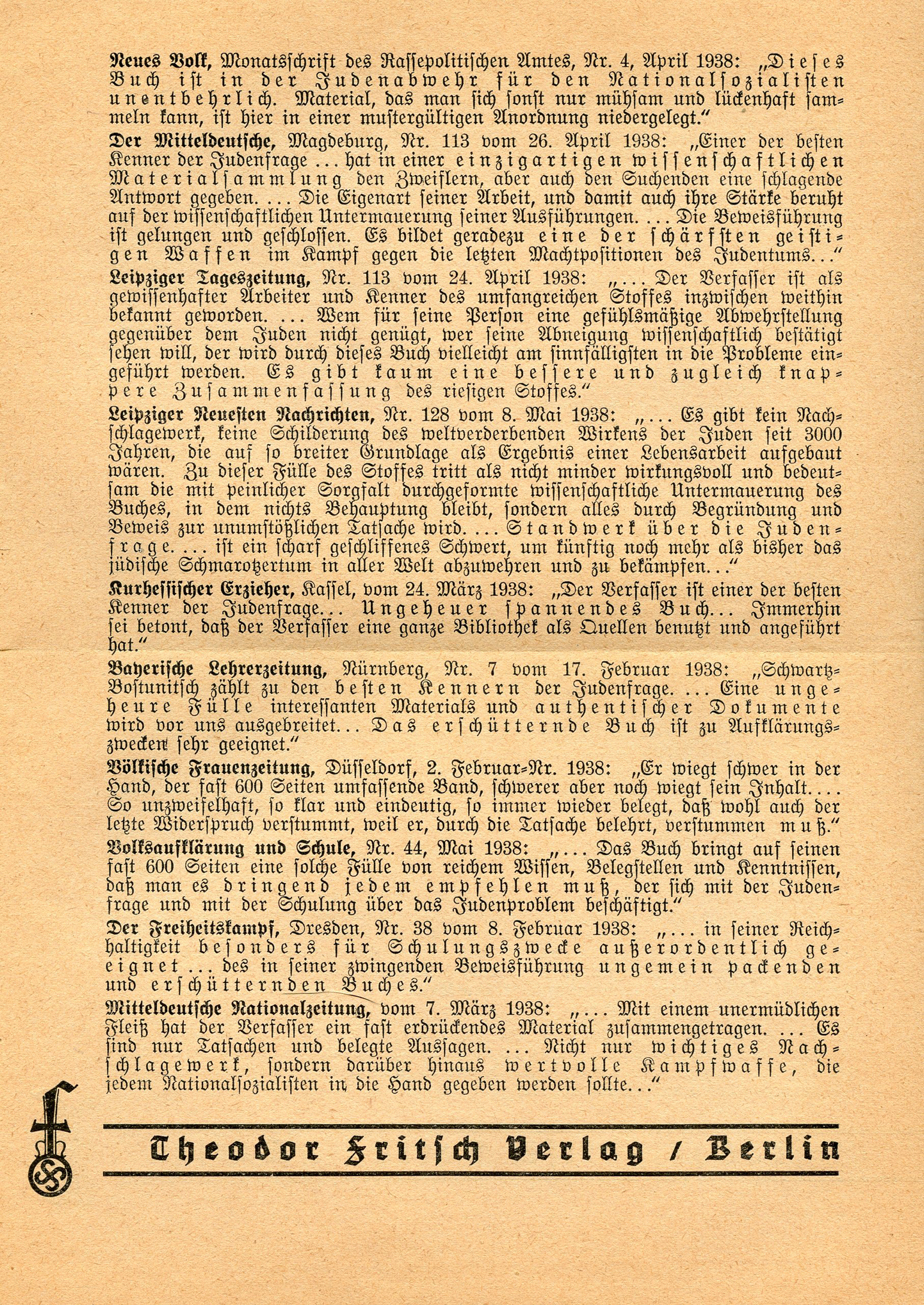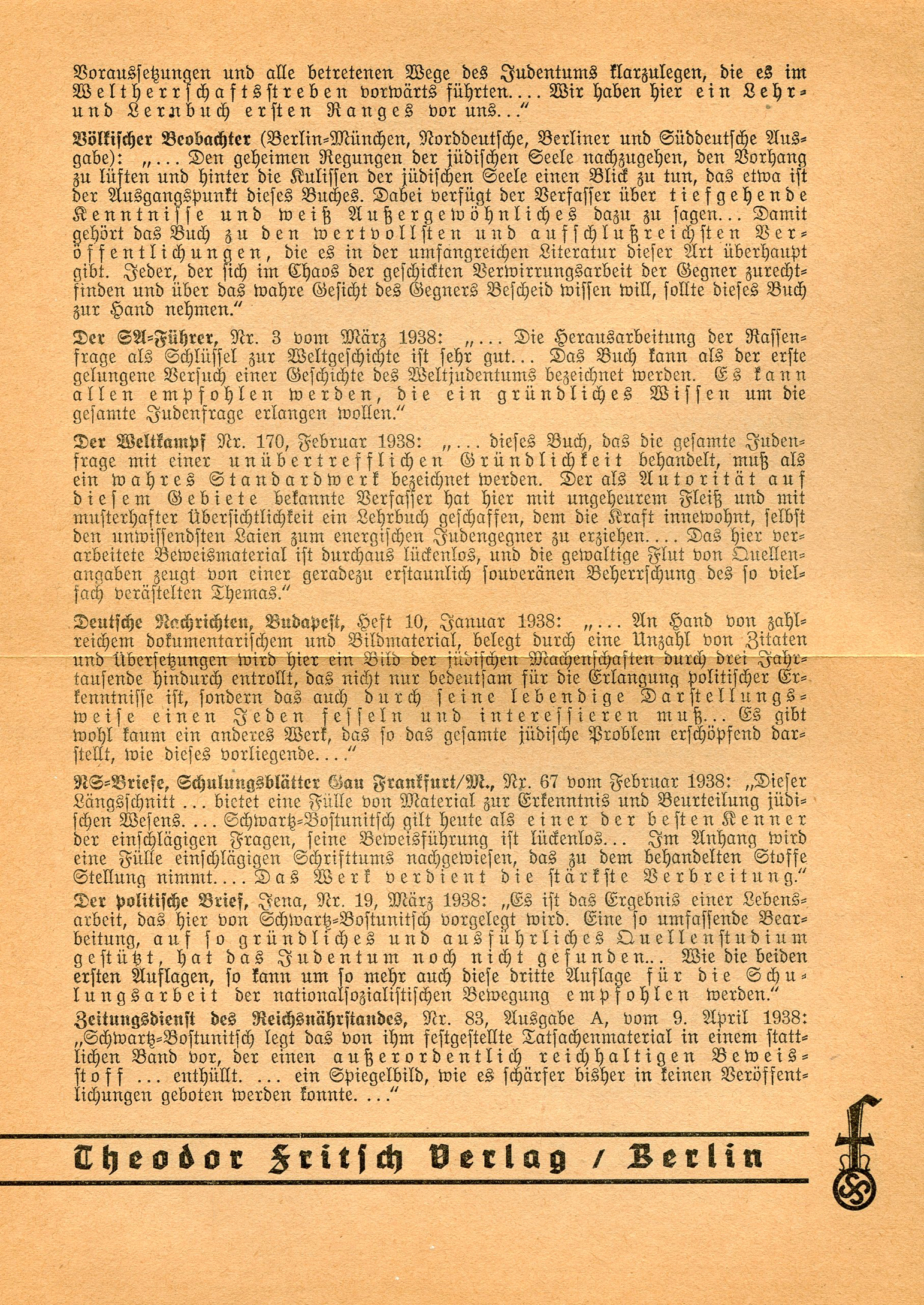 Dieses Buch ist in der Judenabwehr unentbehrlich!'